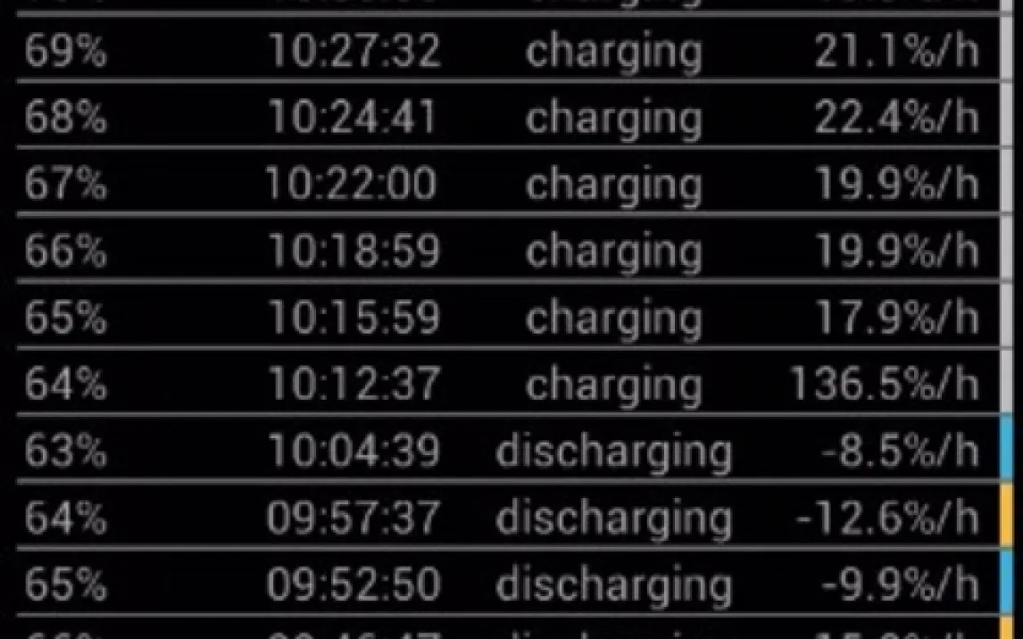 Приложение выводит ключевые показатели состояния батареи прямо в панель уведомлений, обеспечивая постоянный доступ к данным без необходимости открывать интерфейс. Для ещё более удобного контроля можно добавить на рабочий стол виджет одного из двух размеров (1x1 или 2x1). Внутри приложения доступен подробный журнал статистики, который накапливает и визуализирует данные об использовании батареи за 30-дневный период. На основе собранной информации система строит прогноз оставшегося времени работы от текущего заряда, а также рассчитывает время до полной зарядки устройства.
