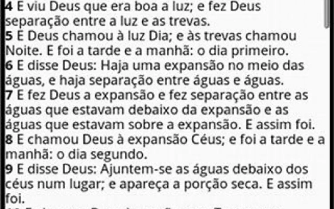 Приложение открывает вам полный текст Библии на красивом португальском языке. Интерфейс настолько интуитивно понятен, что им легко пользуются и молодые, и пожилые читатели. Вы быстро найдете нужную книгу, главу и стих. А приятное оформление делает чтение комфортным для глаз даже в вечернее время.