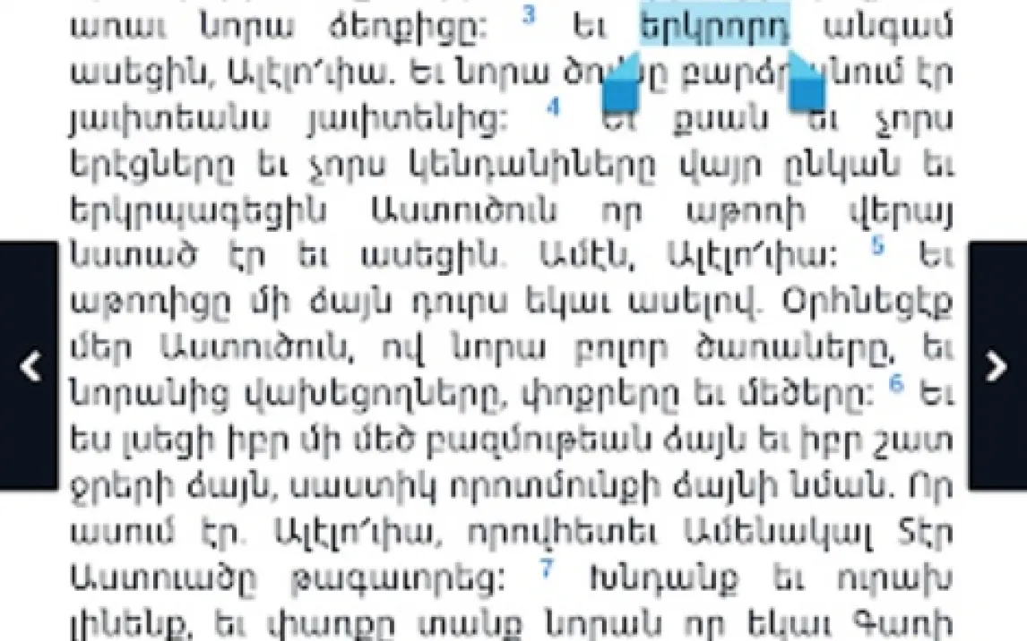 Работа с отрывками реализована гибко. Можно выделить один стих, несколько подряд или выборочно, через запятую. Выделенные фрагменты копируются в буфер обмена в готовом для вставки формате. Или экспортируются напрямую в сторонние приложения, такие как «Заметки» или мессенджеры. При цитировании автоматически проставляется источник (книга, глава, стихи). Это упрощает создание личных архивов и обсуждение прочитанного.