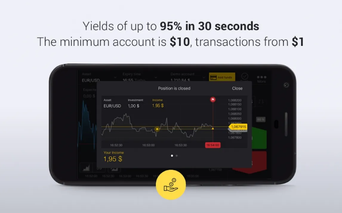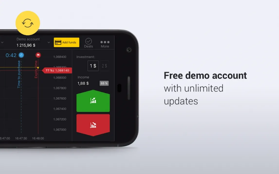 Интерфейс приложения оптимизирован для мобильных устройств, обеспечивая быстрое переключение между графиком и кнопкой заключения сделки. Обновления котировок поступают без задержек, что критически важно для краткосрочных операций. Визуальное оформление позволяет настроить отображение графика для комфортного анализа.