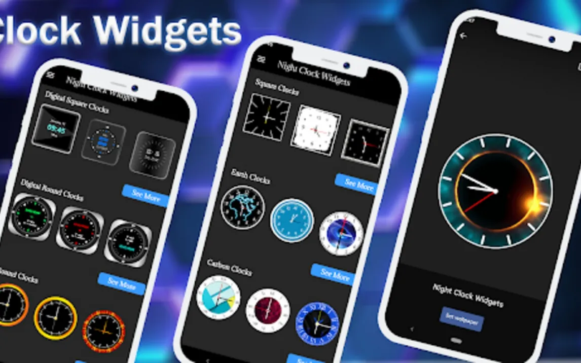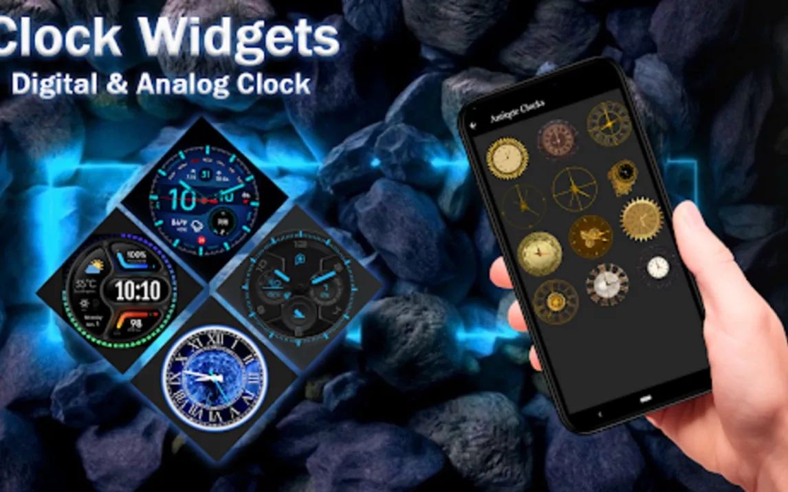 Ядро приложения — это обширная и постоянно пополняемая коллекция виджетов, разделённых на два основных класса: аналоговые и цифровые. Аналоговые дизайны представлены в трёх ключевых стилистиках: классические винтажные циферблаты с текстурой состаренного металла, ультрасовременные модели с геометрической графикой и абсолютно минималистичные варианты, где акцент сделан на идеально плавном движении стрелок. Каждый аналоговый виджет поддерживает детальную настройку размера вплоть до пикселя, что позволяет идеально вписать его в любую компоновку экрана. Цифровые виджеты ориентированы на чёткость и информативность: вы можете выбирать из футуристических шрифтов с неоновым свечением, сдержанных типографик в стиле минимал и даже стилизованных под ЖК-дисплеи. Для цифровых отображений доступна отдельная панель настройки, где можно независимо менять цвет часов, минут, даты и фонового акцента.
