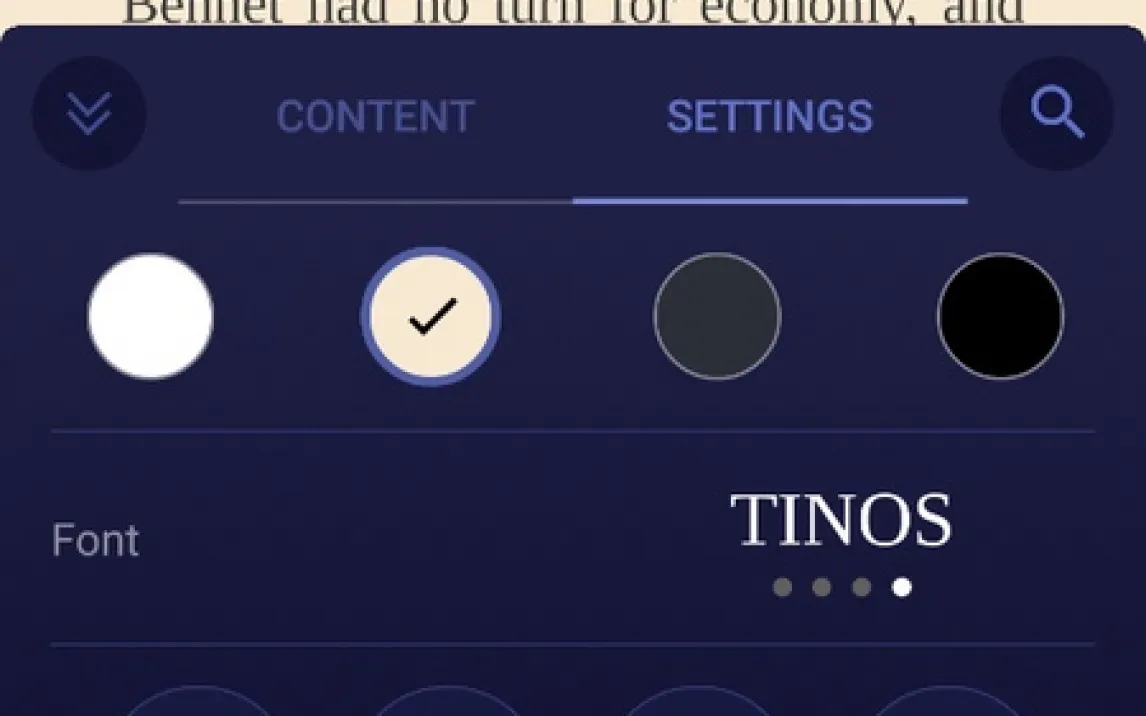 Разработчики из MobiPups+ создали eBoox: Reader с глубокой настройкой под индивидуальные предпочтения. Вам не придётся мириться со стандартными параметрами. Вы получаете полный контроль над визуальным восприятием текста: регулируйте не только размер и тип гарнитуры, но и межстрочный интервал для снижения утомляемости глаз. Кроме того, вы можете сменить фон страницы, выбрав классический белый, тёмный режим для ночного чтения или уютный сепийный оттенок, имитирующий страницы старой книги.