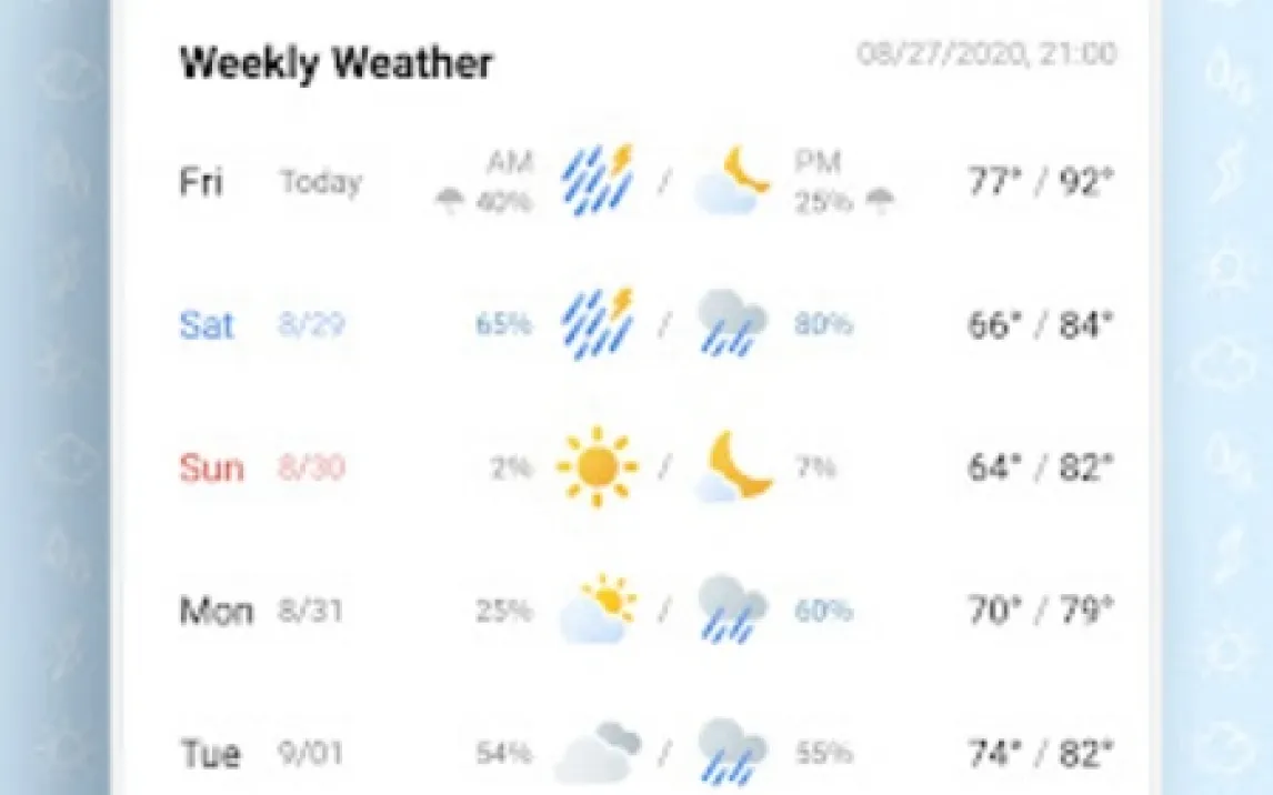 Визуальная составляющая выполнена в минималистичном стиле с акцентом на читаемость данных даже при ярком солнечном свете. Производительность оптимизирована для быстрой загрузки актуальной информации даже при слабом интернет-соединении, а потребление энергии сведено к минимуму. Удобство обеспечивается за счёт настраиваемых виджетов для рабочего стола, отображающих погоду без необходимости открывать само приложение, и системы оповещений о резких изменениях условий.