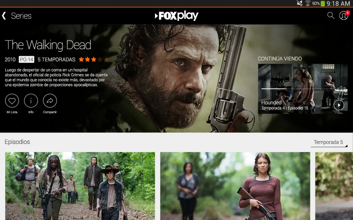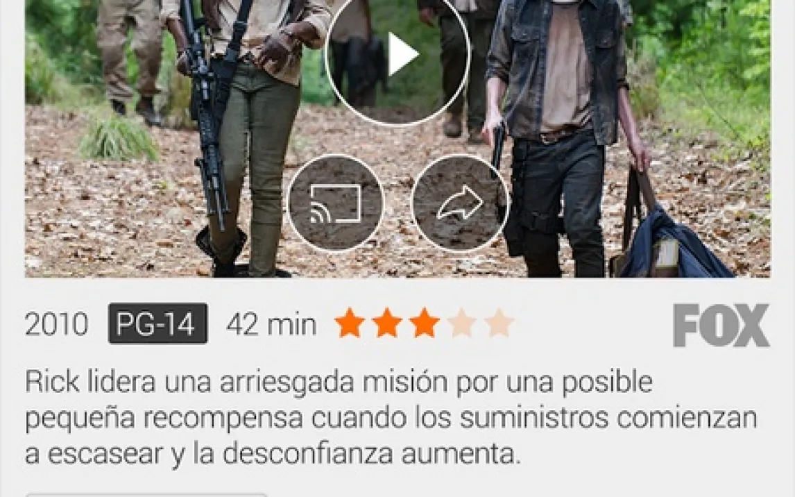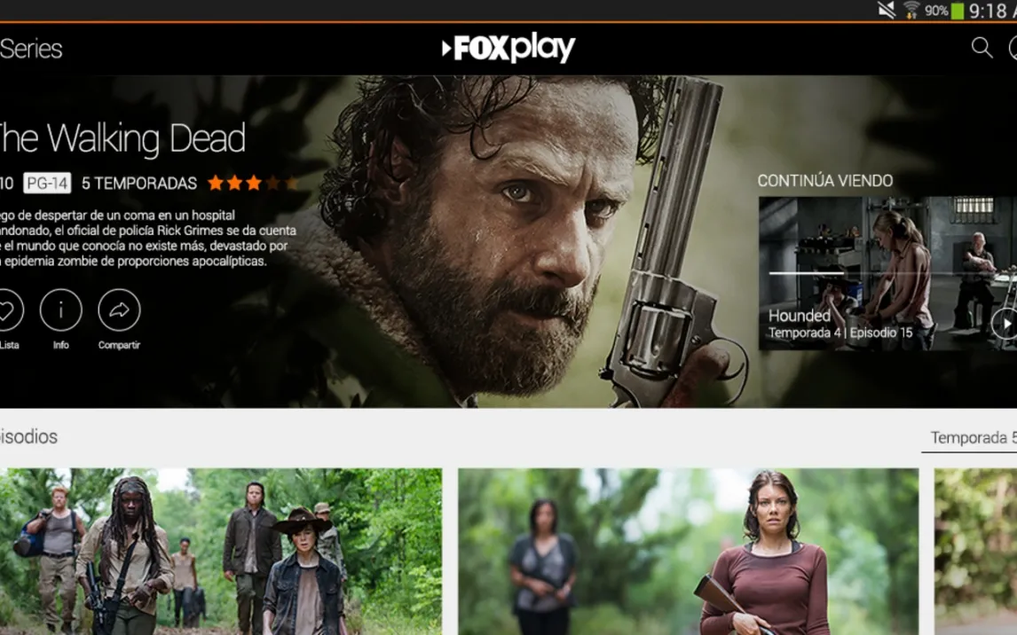 Приложение обеспечивает потоковую передачу видео в высоком разрешении, поддерживая выбор языка аудиодорожки и управление субтитрами. Пользовательский интерфейс структурирован по каналам, жанрам и коллекциям, что упрощает навигацию по обширному каталогу. Каталог включает полные сезоны сериалов, такие как «Ходячие мертвецы», последние эпизоды которых появляются здесь в первую очередь, а также фильмы, анимацию, документальные и спортивные программы.