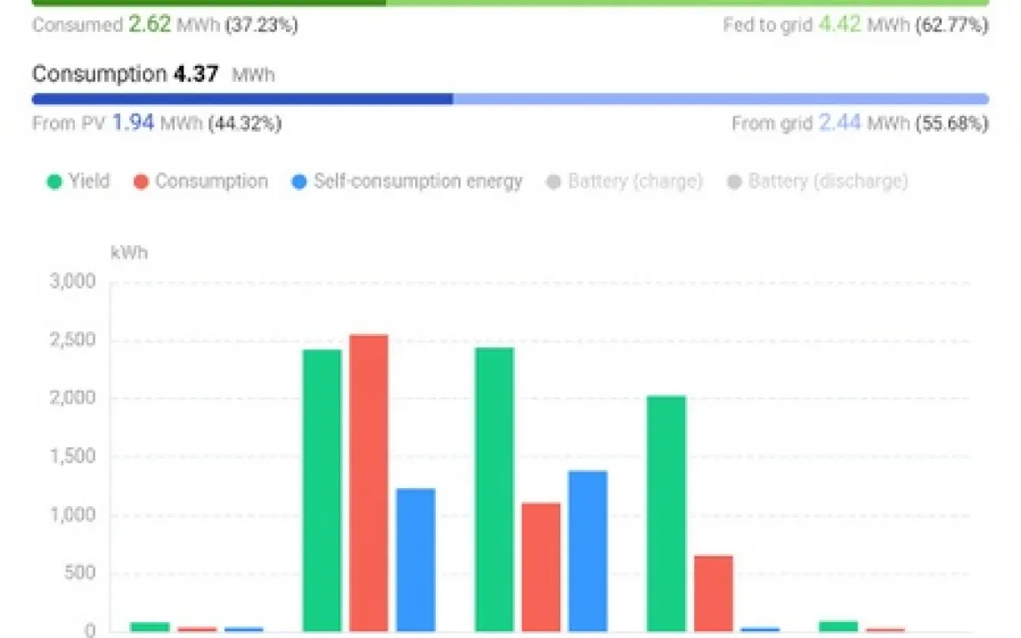 Исторические отчеты и тренды: Изучайте сгенерированные приложением отчеты за неделю или месяц, чтобы отслеживать долгосрочную производительность и оптимизировать энергогенерацию.