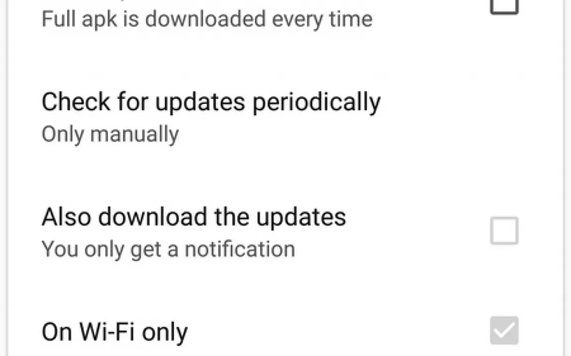 Интерфейс продуман до мелочей. Здесь нет навязчивой рекламы, которая отвлекает от поиска. Вам доступен полный контроль над загрузками. Вы сами решаете, куда сохранять APK-файлы и нужно ли удалять их после установки. Экономьте мобильный трафик, активировав загрузку только через Wi-Fi.