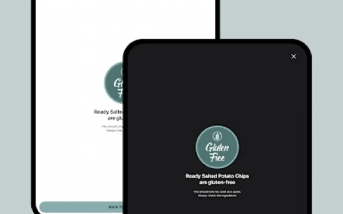 Основной режим работы — сканирование штрихкода с помощью камеры устройства. Приложение декодирует код и выполняет поиск в локальной и облачной базах данных, после чего отображает детализированную карточку продукта. В карточке указывается статус по глютену: подтвержденное отсутствие, потенциальное наличие или неполные данные. Дополнительный режим — ручной ввод: если сканирование невозможно, пользователь может найти продукт через текстовый поиск по названию или внести новый товар вручную, заполнив структурированную форму. Все операции выполняются в автономном режиме после первичной загрузки необходимых данных.