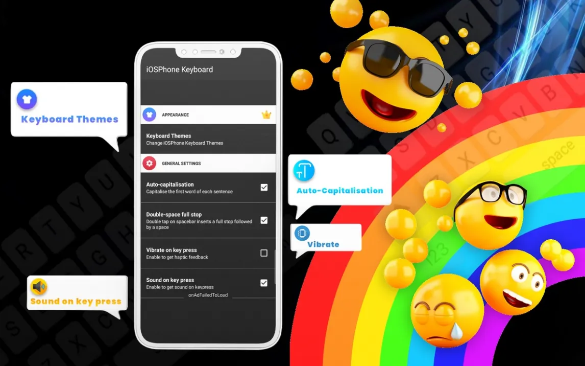 Клавиатура предлагает точную визуальную адаптацию, включая форму клавиш, шрифты, системные звуки и вибрацию, характерные для iOS. Механика набора включает поддержку свайпов, предиктивный ввод и быстрый доступ к цифровому ряду. Центральным элементом является встроенный каталог эмодзи и стикеров, организованный по категориям, с возможностью быстрого поиска. Работа ведется через замену системной клавиатуры в любом приложении для обмена сообщениями, социальных сетей или работы с текстом.