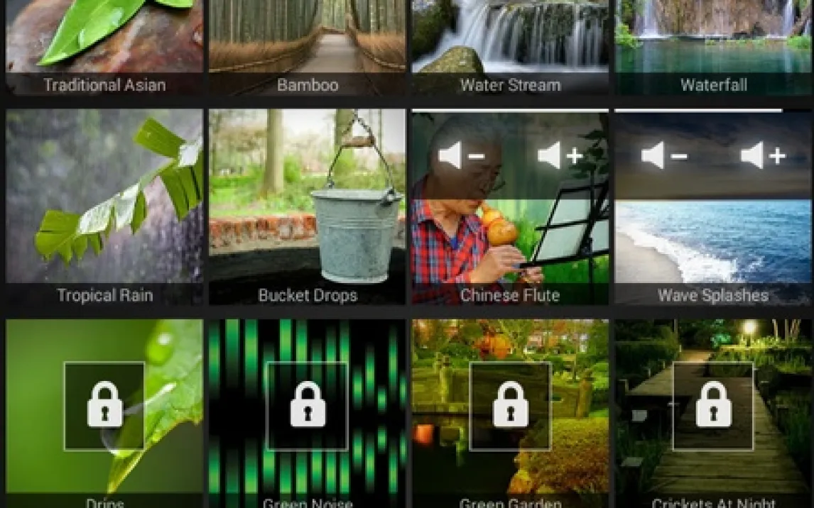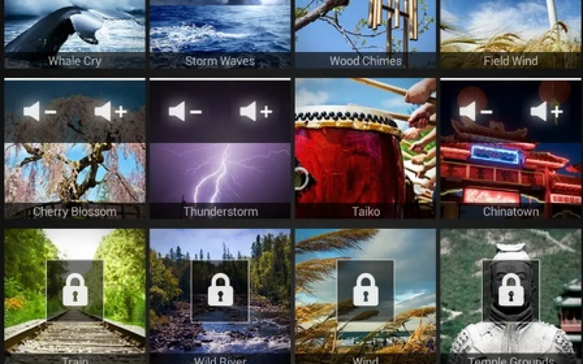 Основной функционал сосредоточен на микшере. В библиотеке содержится более 100 отдельных звуковых дорожек. Пользователь может комбинировать до 10 из них для одновременного воспроизведения. Громкость каждого источника регулируется независимо через отдельные ползунки. Это позволяет точно сбалансировать финальную аудиокартину.