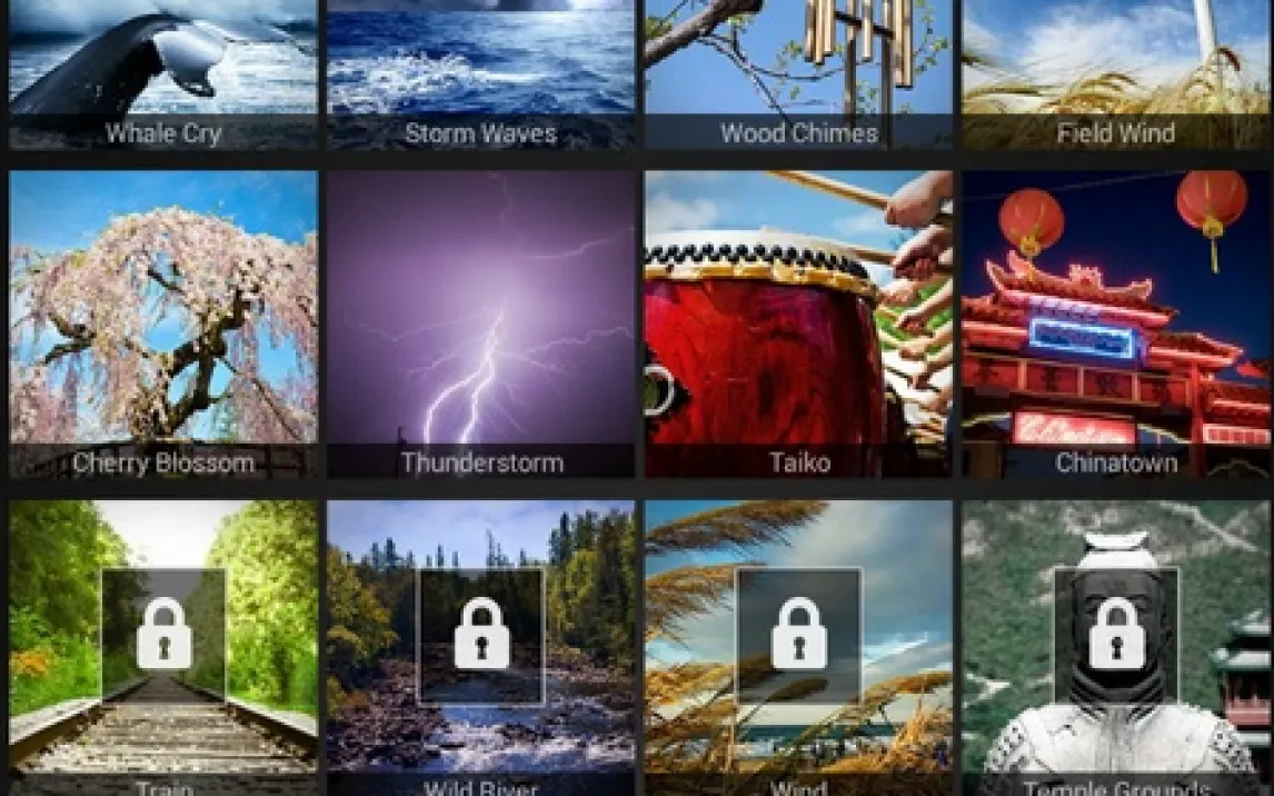 Доступные звуки включают природные и атмосферные записи. В коллекции представлены шум прибоя, порывы ветра, различные виды дождя, пение птиц. Бесплатная версия предоставляет доступ к более чем половине библиотеки. Остальные треки разблокируются через внутренние покупки. Для полного погружения рекомендуется использовать стереонаушники. Это обеспечит четкое пространственное разделение звуков.