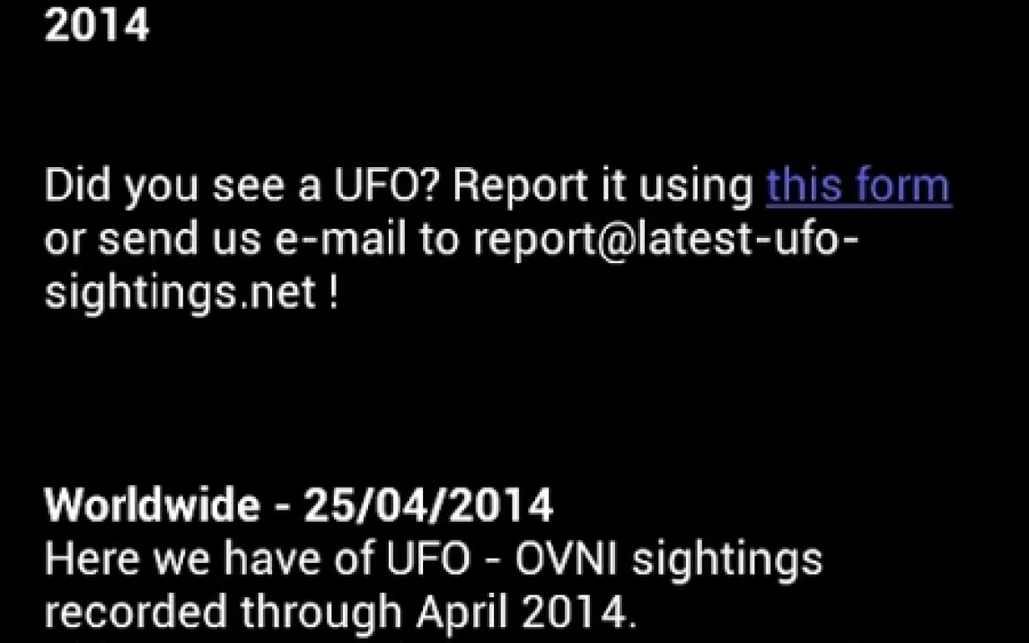 Скачайте приложение Latest UFO Sightings сейчас, чтобы начать собственное расследование.