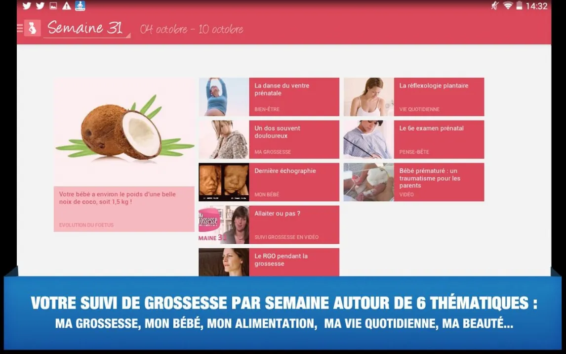 Две полоски меняют всё. Впереди — 9 месяцев волнений, вопросов и удивительных открытий. Как следить за развитием малыша? Что происходит с телом мамы на этой неделе? Как подготовиться к родам и встрече с новорожденным? Приложение Ma grossesse создано, чтобы стать вашим личным помощником и надежным источником проверенной информации на каждом этапе этого пути — от зачатия до первых шести недель жизни малыша.