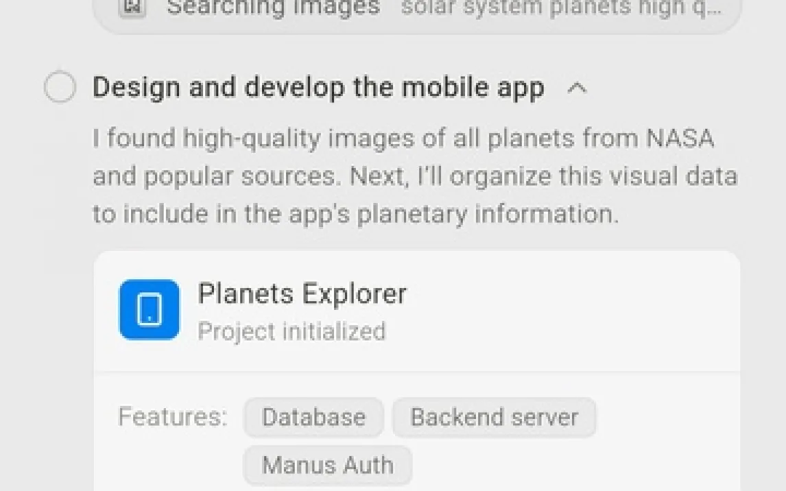 Система демонстрирует способность к параллельному исследованию множества источников информации без потери контекста. Агент обладает правами на установку необходимых пакетов и исполнение кода в изолированной среде для выполнения задачи. Для командной работы реализована функция Manus Collab, позволяющая нескольким пользователям совместно работать над одним проектом в реальном времени. Однако эффективное использование требует смены парадигмы взаимодействия: вместо формулировки простых запросов необходимо делегировать агенту полную задачу, что создает первоначальную кривую обучения. Для простых, односложных вопросов процесс может занимать больше времени, чем у мгновенных чат-моделей, из-за накладных расходов на планирование действий агентом.