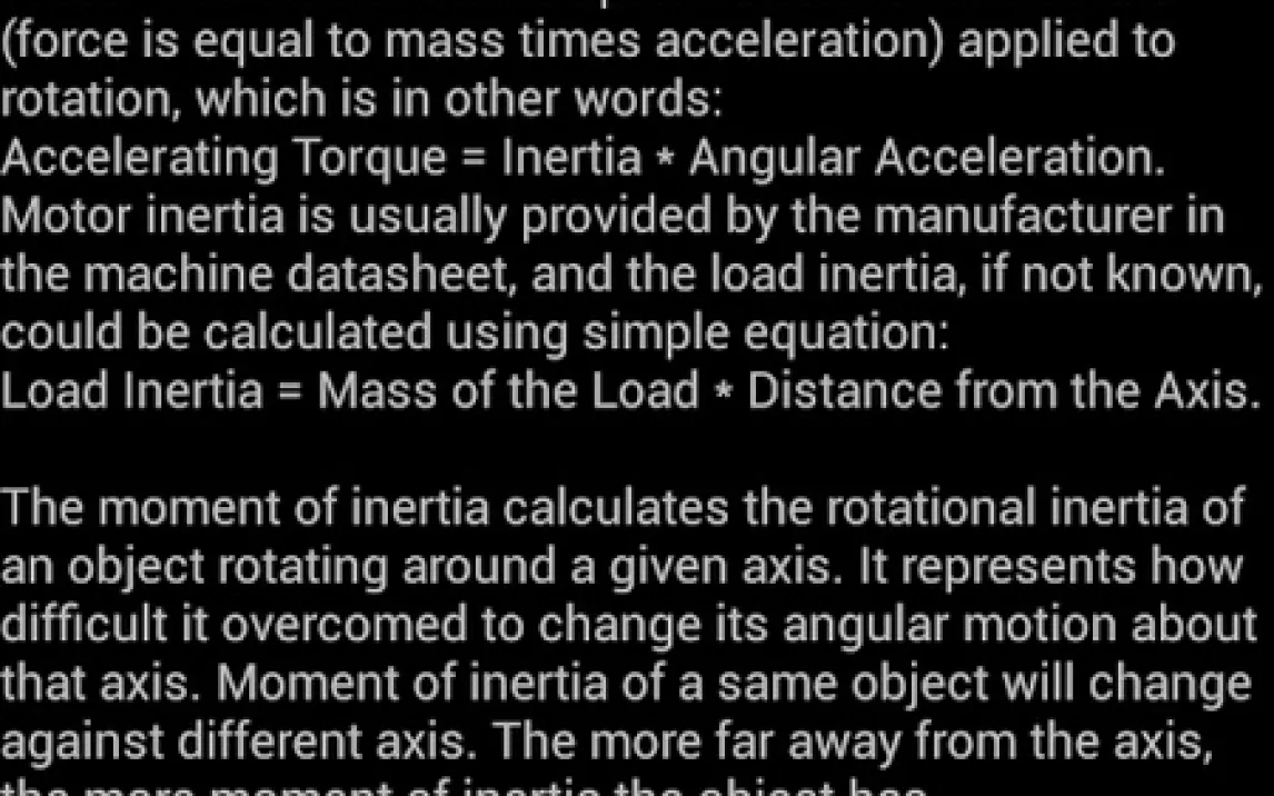 Основная задача приложения — обеспечить быстрый и наглядный инженерный анализ. Вы вводите известные параметры: номинальную скорость двигателя, момент инерции, развиваемый двигателем момент и момент нагрузки. Алгоритм, построенный на чётких теоретических допущениях, моментально выдаёт расчётное время пуска. Этот подход не только экономит часы работы, но и служит превосходным образовательным инструментом, визуализируя связь между теорией электромеханики и практическими эксплуатационными характеристиками. Вы сможете на реальных примерах изучать, как изменение момента инерции или нагрузки влияет на динамику запуска, что незаменимо для учебных курсов по электротехнике и машиностроению.