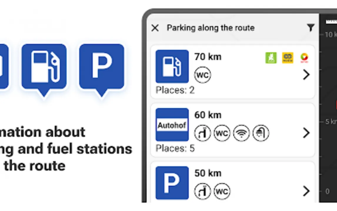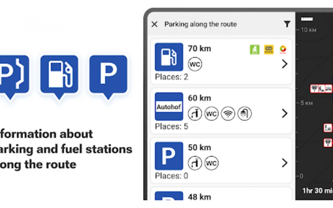 Odysseus заботится не только о дороге, но и о вашем ресурсе. Встроенная база данных с фильтрами помогает легко находить на карте подходящие заправочные станции и оборудованные зоны отдыха по всему маршруту. Больше не нужно гадать, где можно безопасно остановиться на перекур или длительный перерыв. Это делает планирование остановок и управление бюджетом на топливо невероятно простым и системным.