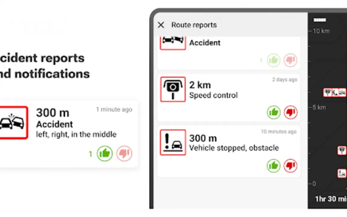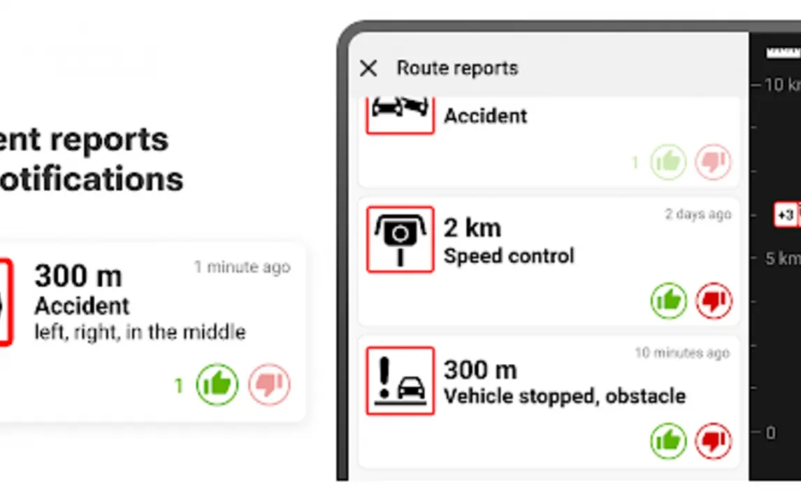Безопасность в дороге складывается из мелочей, и приложение берёт их под контроль. Система помощи при движении по полосам заранее подсказывает, на какую полосу необходимо перестроиться для манёвра или съезда, что особенно спасает на сложных развязках. Вы также получаете голосовые и визуальные предупреждения о скоростных ограничениях, актуальных именно для грузовиков, и о расположении камер контроля скорости — как стационарных, так и мобильных. Дополнительный уровень осведомлённости создают сообщения о дорожных происшествиях и заторах в реальном времени, позволяющие скорректировать маршрут на ходу.