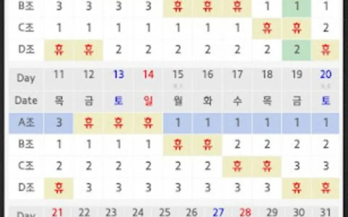 Приложение позволяет конструировать расписания, отталкиваясь от предустановленных шаблонов. Диапазон поддерживаемых схем варьируется от относительно простых двухсменных графиков для двух команд до более комплексных систем, например, для четырёх команд с тремя типами смен. Механика работы заключается в выборе базового шаблона и его последующей адаптации под конкретные требования: продолжительность цикла, наименования смен или команд, цветовое кодирование. Календарь поддерживает ручное редактирование, что позволяет оперативно вносить единичные изменения, такие как подмена или перенос смены.