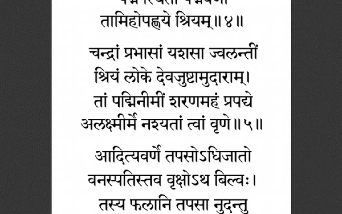 В основе приложения лежат бесценные гимны из Ригведы, посвящённые богине Лакшми. Каждый стих представлен с величайшим вниманием к аутентичности, сохраняя оригинальную санскритскую метрику и произношение. Это позволяет вам погрузиться в практику, проверенную тысячелетиями. Звук высочайшего качества создаёт атмосферу полного погружения, будто вы находитесь в пространстве, специально созданном для умиротворения и внутренней работы. Приложение становится вашим верным спутником в стремлении к процветанию — не только материальному, но и духовному.