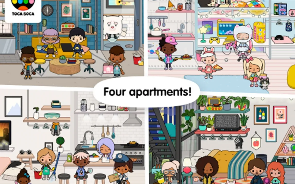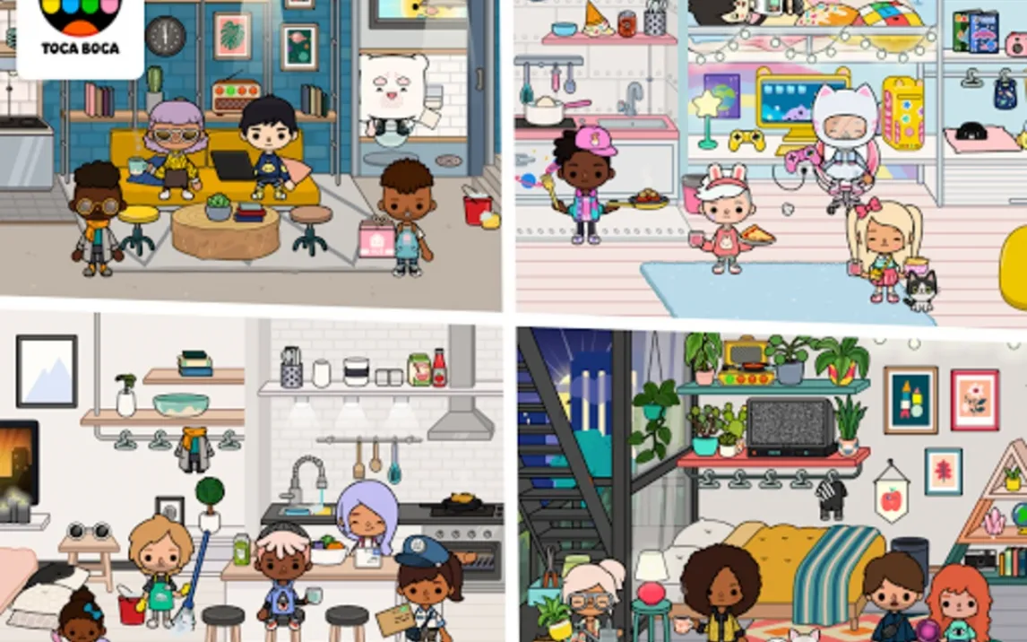 В этом приложении дети становятся творцами собственного мира. Они могут свободно исследовать четыре уникальных локации — уютную квартиру, оживлённый продуктовый магазин, парикмахерскую и центр города с парком. Каждое место наполнено интерактивными предметами и персонажами, с которыми можно взаимодействовать. Ребёнок не просто наблюдает, а создаёт сценарии: приготовить ужин на кухне, сделать причёску в салоне, устроить пикник в парке или разыграть встречу друзей в кафе. Это способствует развитию логики, пониманию бытовых процессов и социальных ролей в формате увлекательной игры.