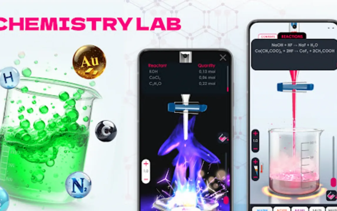 Основной функционал приложения сосредоточен вокруг интерактивной лаборатории, где пользователь имеет доступ к библиотеке из более чем 400 виртуальных реагентов. Система позволяет комбинировать вещества, инициируя свыше 2000 предзапрограммированных реакций. В процессе симуляции отслеживаются и визуализируются ключевые параметры: изменение уровня pH, динамика растворимости соединений, тепловые эффекты. Все процессы отображаются в режиме реального времени, что обеспечивает наглядное изучение даже опасных или сложных для воспроизведения в учебных условиях реакций.