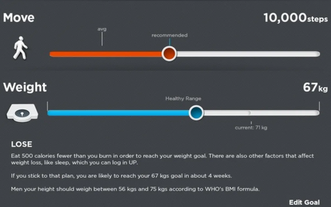 Работать с приложением — одно удовольствие. Оно плавно ведёт вас, помогая осознать простую истину: долгосрочное здоровье строится на ежедневных мелочах. Сколько вы прошли, как крепко спали, что съели на обед. Всё это складывается в мощную систему самопознания. Особенно мощный симбиоз получается при использовании со специальными трекерами Jawbone. Устройства автоматически фиксируют каждый шаг, подъём по лестнице и фазы сна, избавляя вас от ручного ввода.
