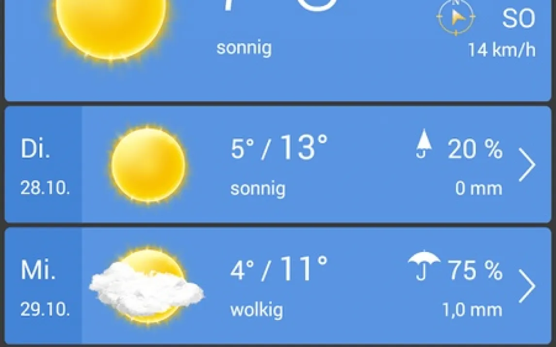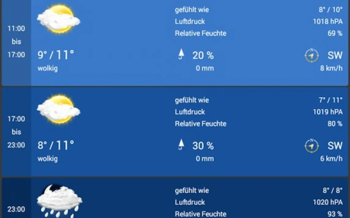 Ищете точный прогноз с детализацией по часам и доступом к реальным камерам наблюдения? weather24 — это профессиональное метеоприложение немецкой разработки, которое предоставляет исчерпывающие данные для планирования дня.