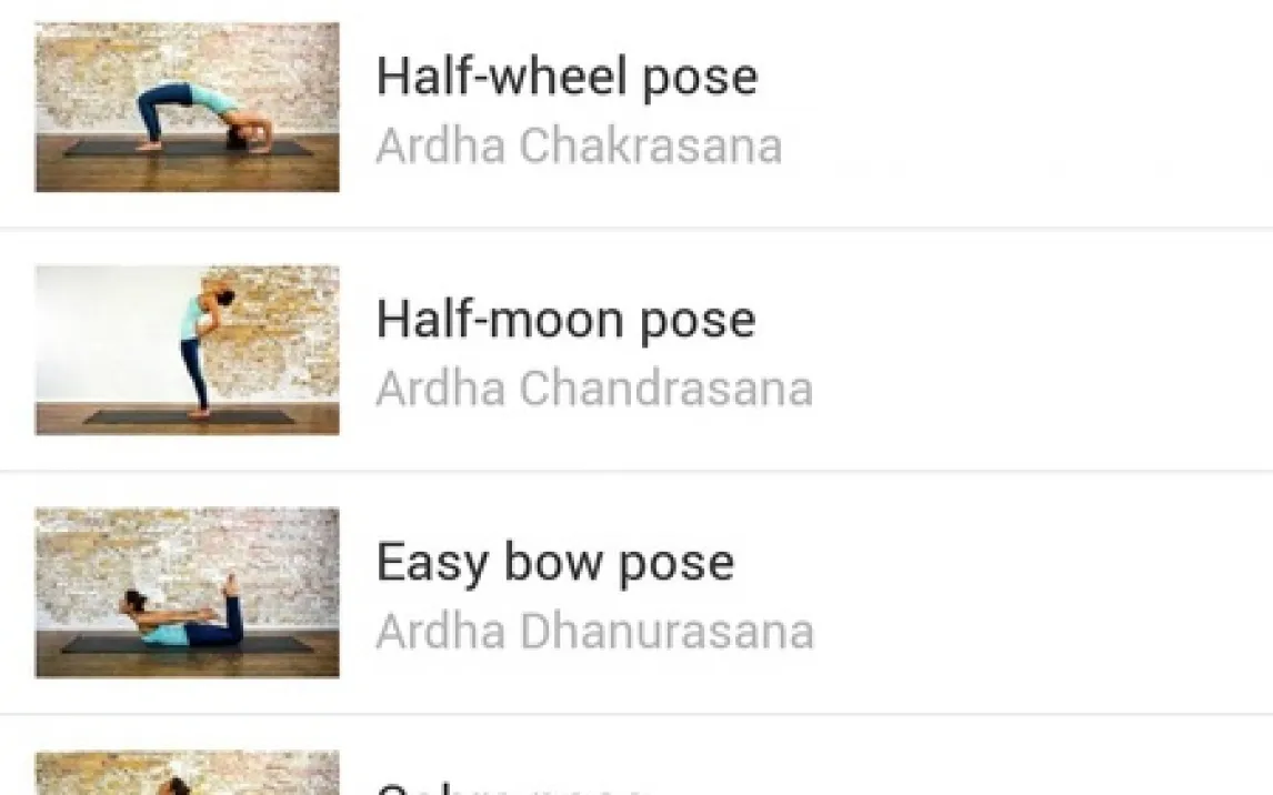 Функционал приложения от разработчика Sport.com сконцентрирован на предоставлении детализированной базы знаний и практических инструментов для самостоятельных занятий. Основу составляет каталог, включающий более 300 асан, каждая из которых снабжена визуальными и текстовыми инструкциями. Для навигации реализована система фильтрации по уровню сложности, типу воздействия на тело и алфавитному порядку, а также строка поиска для точечного нахождения нужной позиции. При выборе конкретной позы интерфейс отображает интерактивную 3D-модель, визуализирующую группы мышц, вовлеченные в работу, что служит инструментом для анализа биомеханики.