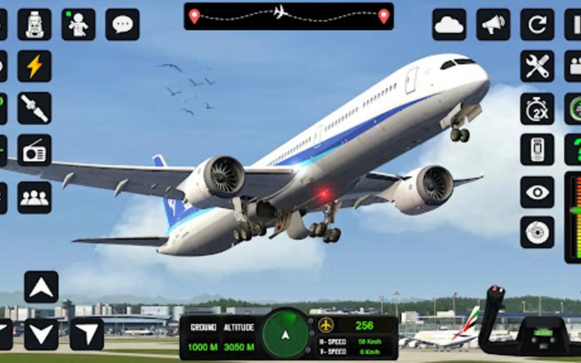 Система управления адаптирована для сенсорного экрана: виртуальный джойстик, слайдеры управления тягой и панель основных приборов. Физика полёта учитывает вес самолёта, аэродинамику и влияние погоды. Вам предстоит работать с шасси, закрылками, предупреждающими системами и навигационными приборами для успешного завершения каждого рейса.