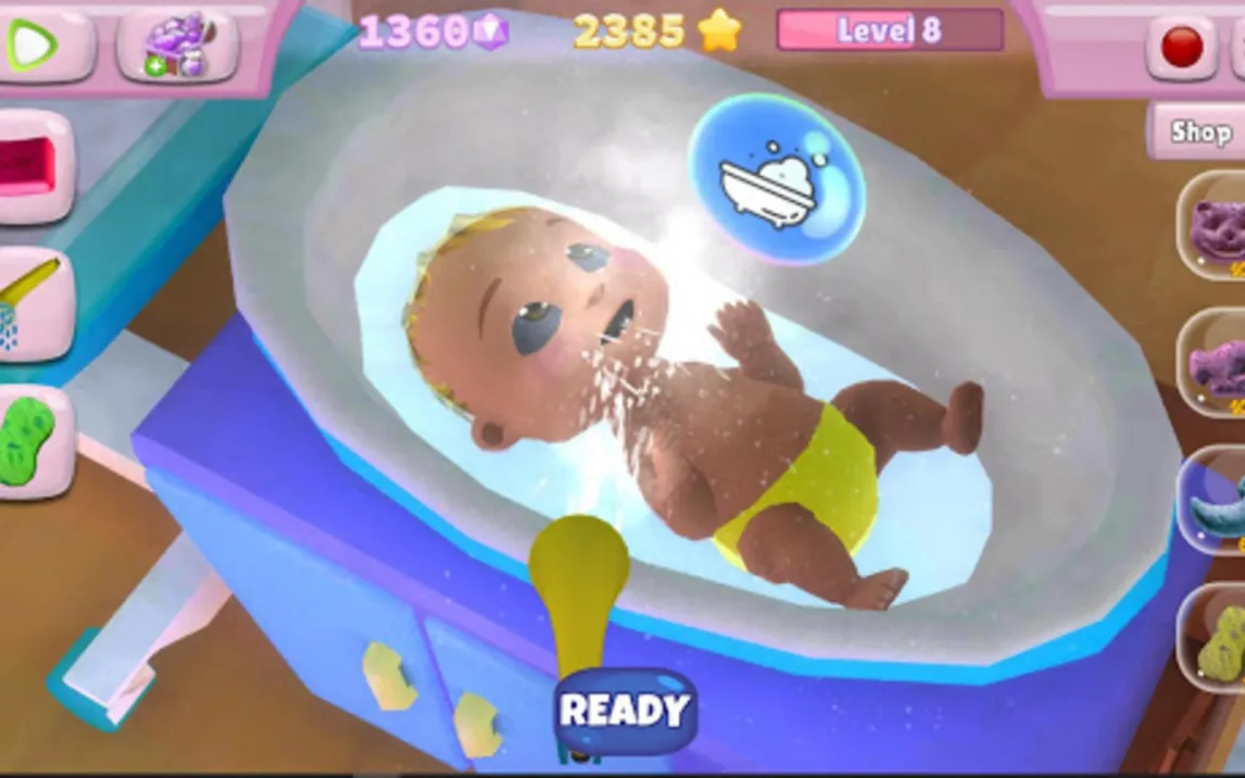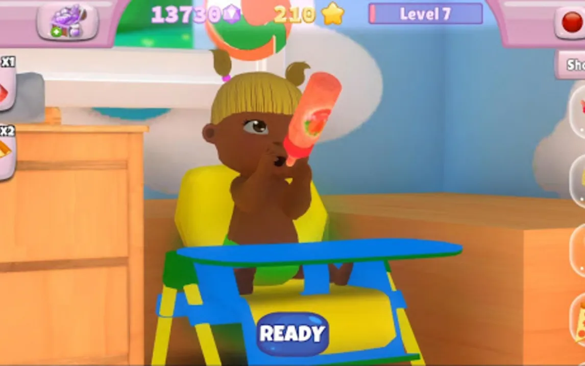 Игра построена вокруг ежедневного ухода за очаровательным малышом по имени Алима. Игрок погружается в уютную детскую комнату, где каждый предмет интерактивен. Основной цикл включает кормление из бутылочки, купание в маленькой ванночке с выбором игрушек, переодевание в милые наряды и укачивание перед сном. После выполнения основных задач открывается режим свободной игры: можно расставлять мебель, выбирать обои или играть с Алимой в развивающие мини-игры, например, находить спрятанные предметы в комнате или слушать названия цветов и животных. Все действия сопровождаются спокойной фоновой музыкой и одобрительными, понятными без слов реакциями персонажа.