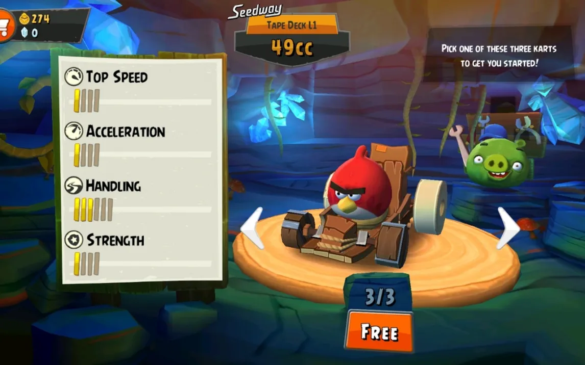 Вас ждут разнообразные трассы Свиного острова, каждая со своими секретами и короткими путями. Выбирайте своего гонщика: каждый персонаж, от impulsive Чака до мощного Теренса, обладает уникальными характеристиками, влияющими на управление. Но настоящая кастомизация начинается с вашего автомобиля. Вы сможете собирать и модифицировать свой карт, улучшая колёса, шасси и двигатель, чтобы создать идеальную машину для обгонов на прямых или для жёсткой борьбы в поворотах.