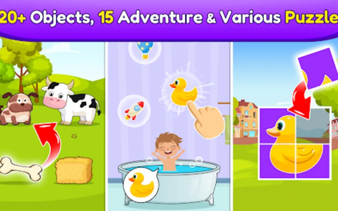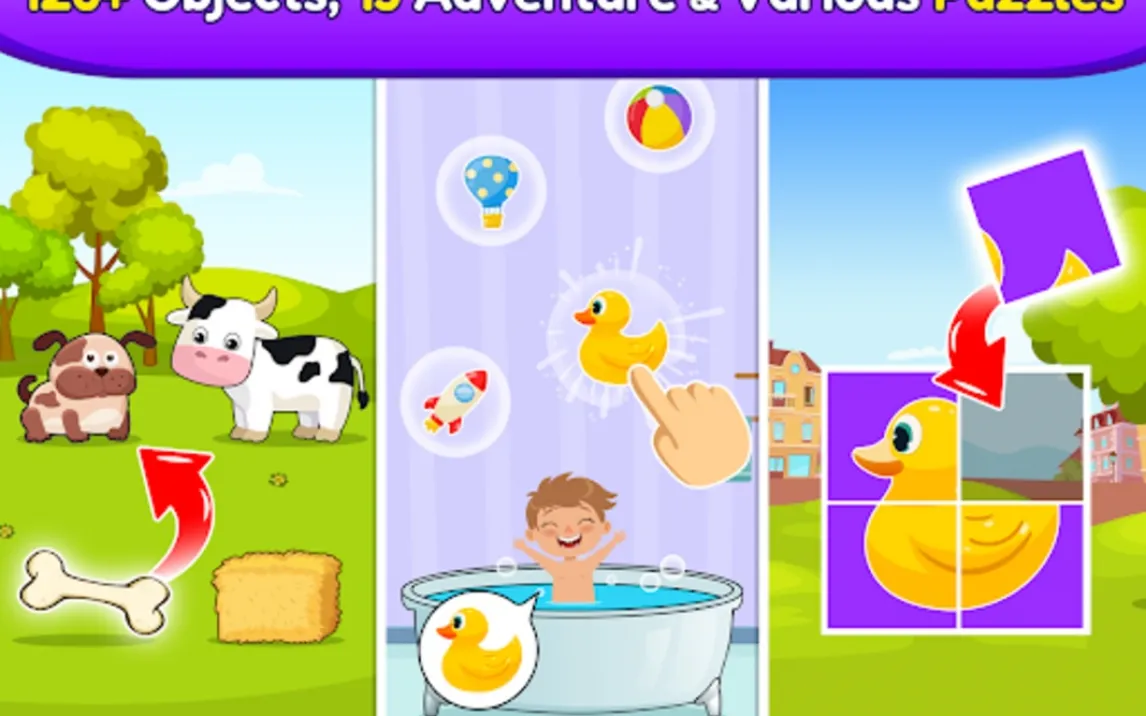 Игра предлагает десятки интерактивных заданий, разработанных с участием детских педагогов. Ребёнок будет собирать пазлы с животными, изучать формы и цвета, слушать звуки музыкальных инструментов и решать простые логические задачки. Яркие анимации и дружелюбные персонажи сопровождают каждое действие, поддерживая интерес и положительные эмоции. Все игры адаптированы под сенсорное управление для самых маленьких пальчиков.
