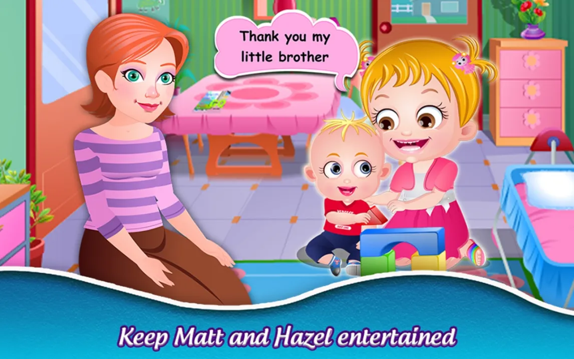 Игрок выступает в роли опекуна для малышки Хейзел в условиях детского сада. Геймплей построен на выполнении последовательных заданий в течение виртуального дня. Каждая сессия представляет собой законченный сценарий: от встречи Хейзел утром и помощи ей переодеться до организации дневного сна, творческих занятий и игр на площадке. Механика интуитивно понятна — необходимо тапать на предметы и персонажей, чтобы взаимодействовать с ними, перетаскивать элементы одежды или игрушки. Игра последовательно знакомит с режимами, включающими приготовление пищи на детской кухне, уборку, базовый уход, а также развивающие мини-игры на распознавание цветов, форм или запоминание предметов.
