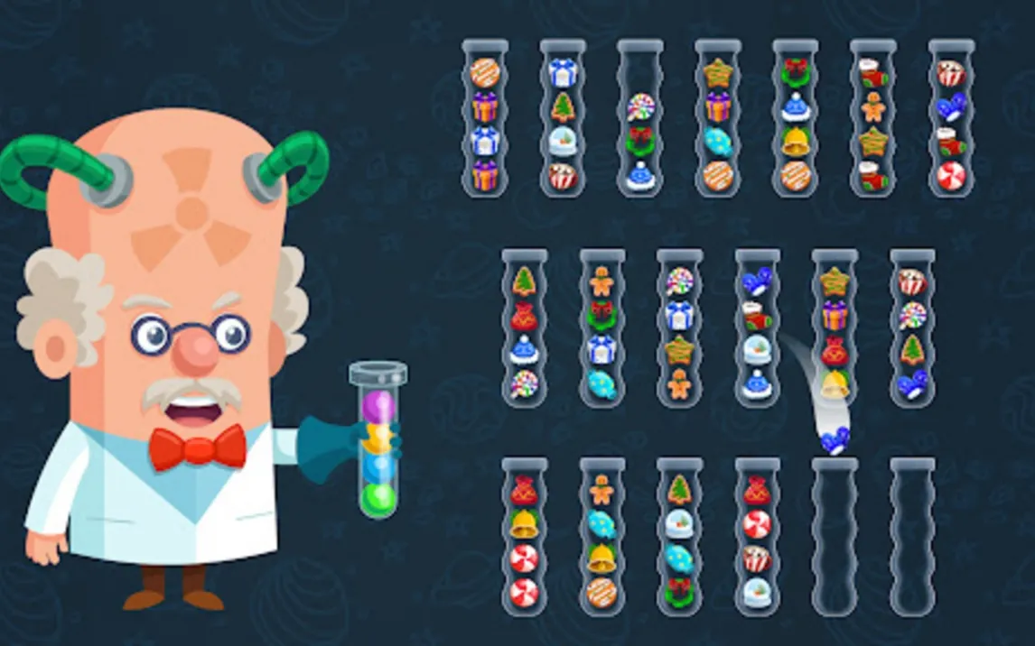 Ядро геймплея строится на классическом принципе сортировки, однако разработчики внедрили несколько систем, которые кардинально меняют восприятие. Ключевой особенностью является наличие дополнительной пустой трубки, которая выступает в роли стратегического буфера. Её грамотное использование отделяет простое решение от оптимального, заставляя игрока мысленно просчитывать последовательность на несколько ходов вперёд. Система отмены действий не имеет ограничений, что полностью снимает стресс от ошибки и превращает процесс в чистый эксперимент с логикой. Это не наказание за неверный ход, а инструмент для исследования всех возможных комбинаций.