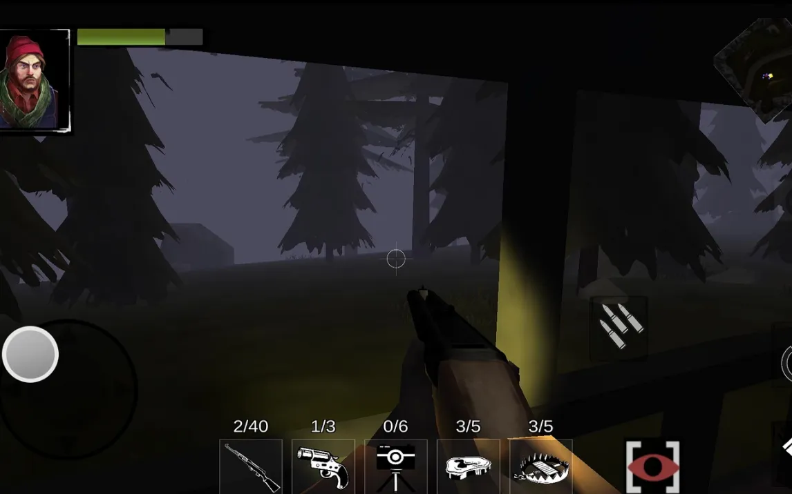 Управление осуществляется через виртуальный джойстик для перемещения по локации. В нижней части экрана расположен набор инструментов. Каждый предмет имеет строго утилитарное назначение. Винтовка наносит прямой урон, но для нейтрализации цели требуется несколько точных попаданий. Ракетница служит для дистанционного воздействия. Фотоаппараты выполняют функцию системы наблюдения, позволяя отслеживать перемещения Бигфута по карте. Стейки используются как приманка для заманивания существа в нужную зону. Ловушки временно обездвиживают цель, создавая окно для атаки или отступления. Кнопки действий в правой части интерфейса активируют текущий выбранный предмет.