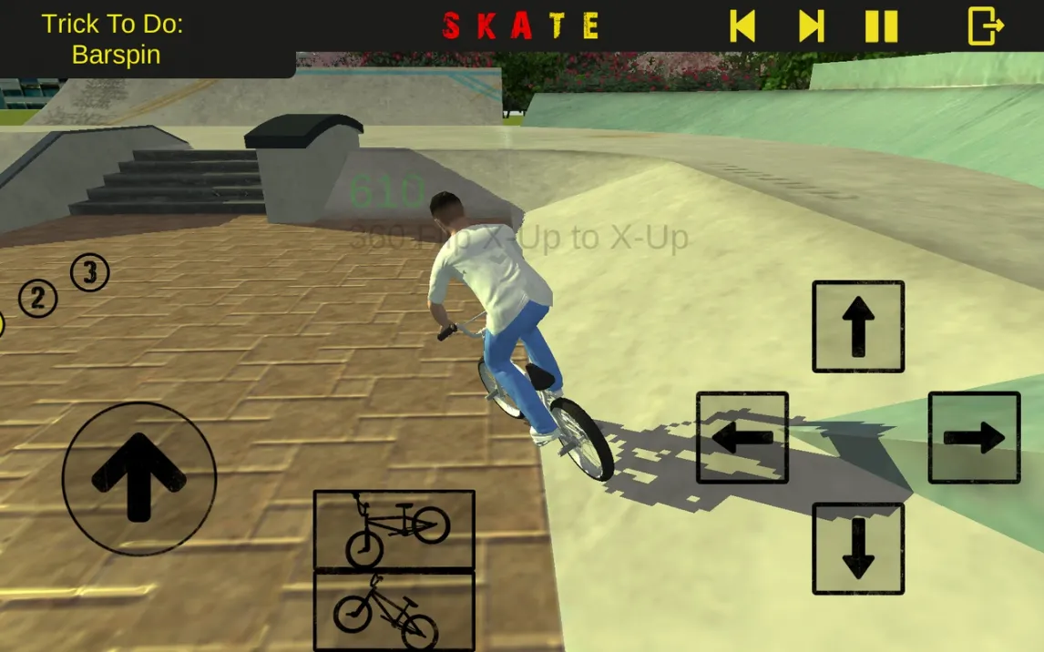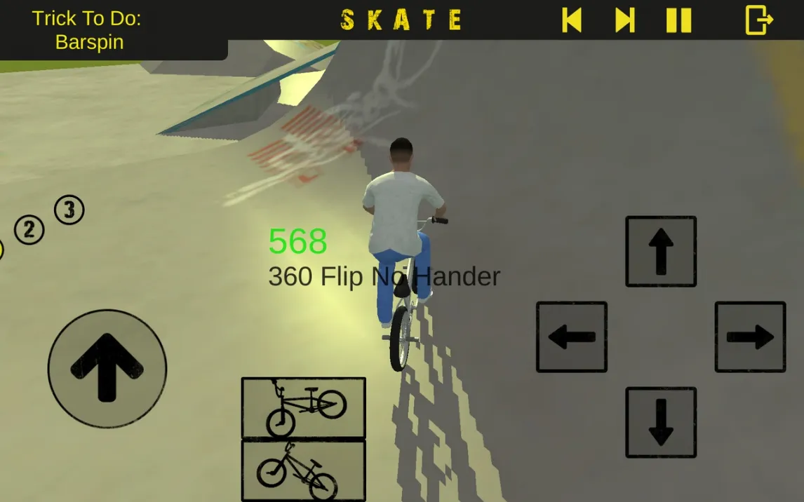 Геймплей строится на последовательном выполнении задач на различных локациях. Ключевой особенностью является многослойная система управления. Помимо базового прыжка, активируется панель с восемью дополнительными трюками, такими как «Superman» (отрыв ног от педалей в полёте), «Footplant» (постановка ноги на раму) или «Barspin» (вращение руля). Эти элементы комбинируются с вращениями велосипеда по разным осям, создавая десятки вариаций. Успех определяется не столько сложностью задуманной комбинации, сколько чистотой и стабильностью приземления. Техническая сторона проработана до мелочей: игроку доступно три схемы управления — сенсорный джойстик, кнопочное управление и использование акселерометра устройства для более тонкого контроля вращения. Поддержка внешних геймпадов добавляет ещё один уровень точности для требовательных пользователей.
