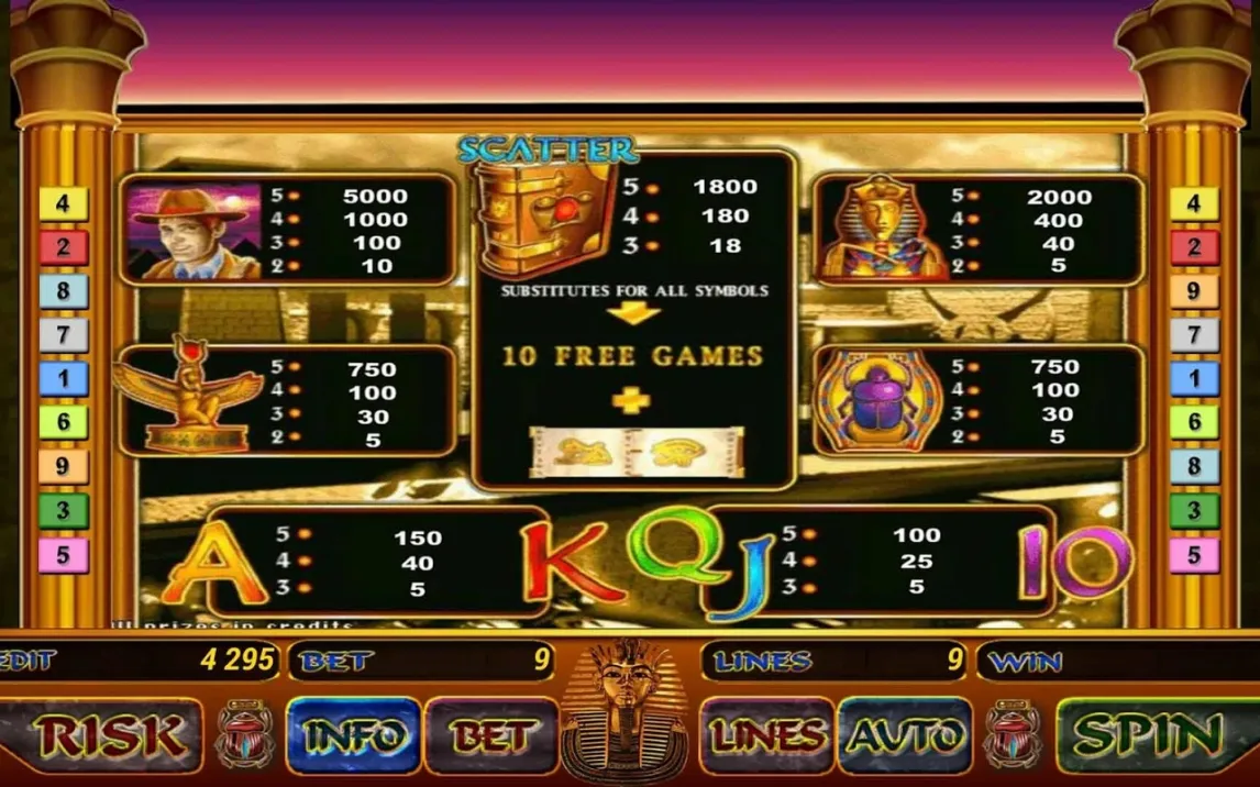 Не откладывайте свою удачу на потом! Древние сокровища ждут своего первооткрывателя, и это можете быть именно вы. Нажмите скачать прямо сейчас и начните своё приключение к несметным богатствам фараонов!