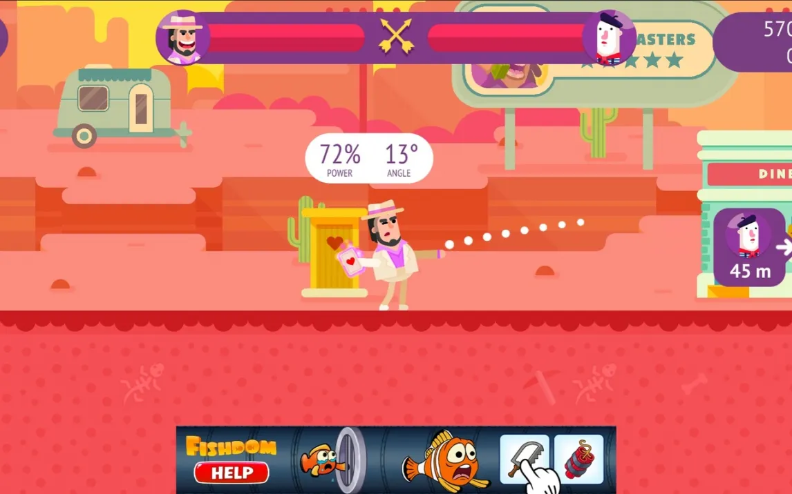 Управление интуитивно и требует сноровки. Чтобы совершить бросок, вы нажимаете на персонажа, оттягиваете палец назад, задавая направление и мощность, и отпускаете. На экране отображается предсказанная траектория, позволяющая внести коррективы в последний момент. Механика рождает азартную игру на опережение и умение читать действия противника. После каждого выстрела вы становитесь зрителем, наблюдая за полётом снаряда и анализируя результат — сокрушительное попадание в голову или досадный промах мимо цели. Затем поля меняются, и вы уже в роли мишени, что добавляет напряжённости каждому раунду.