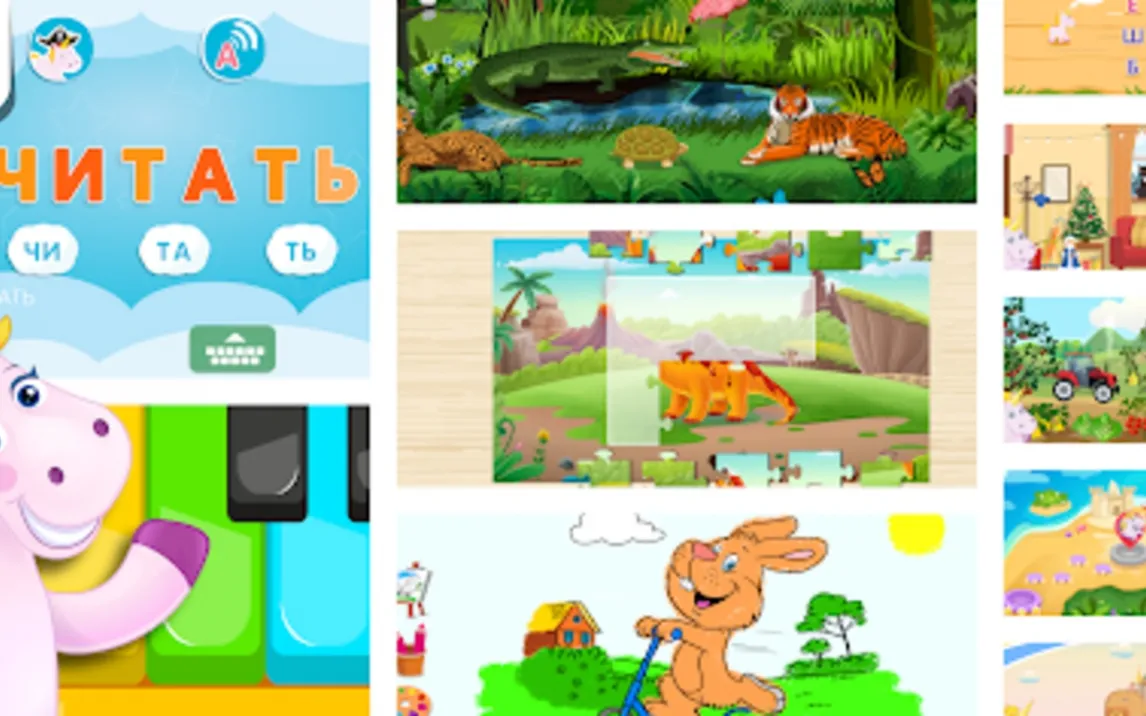 Следующий этап — закрепление навыков через разнообразные активности. Приложение включает тематические модули, такие как «Игровой городок» или «Дом слогов». В них ребёнок решает головоломки, собирает пазлы, взаимодействует с интерактивными панорамами. Эти сцены содержат сотни озвученных объектов — от животных до предметов быта. Такой формат помогает расширять словарный запас в контексте. Отдельно стоит отметить модули для творчества: рисование и раскраски, которые развивают моторику и служат отдыхом между учебными блоками.