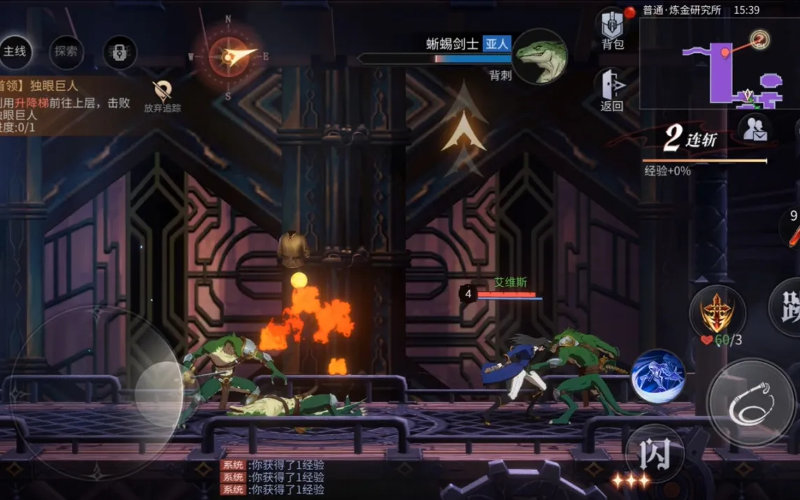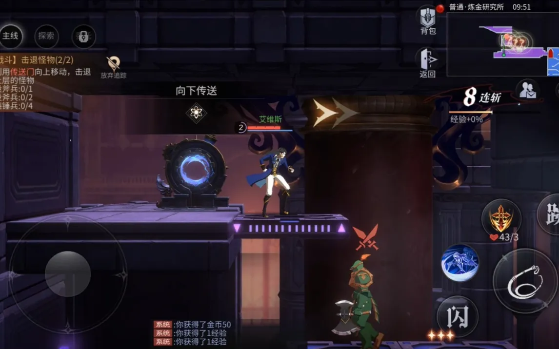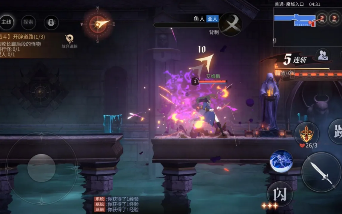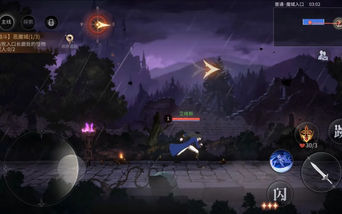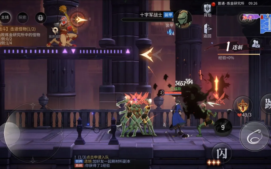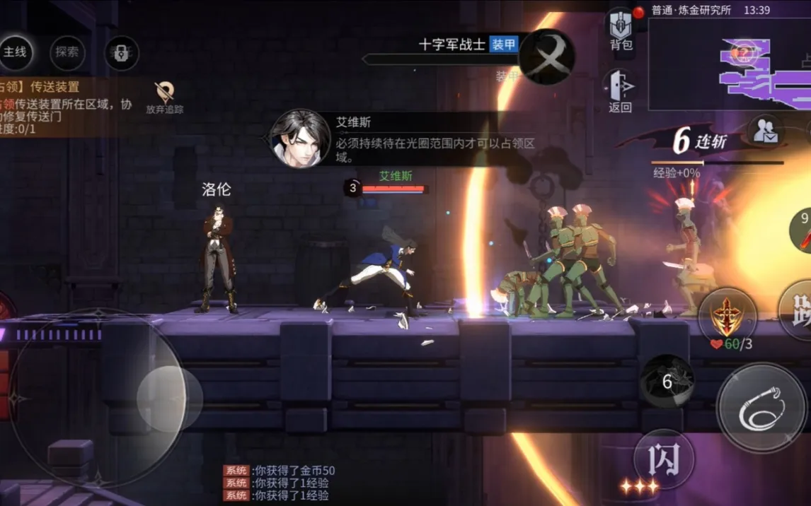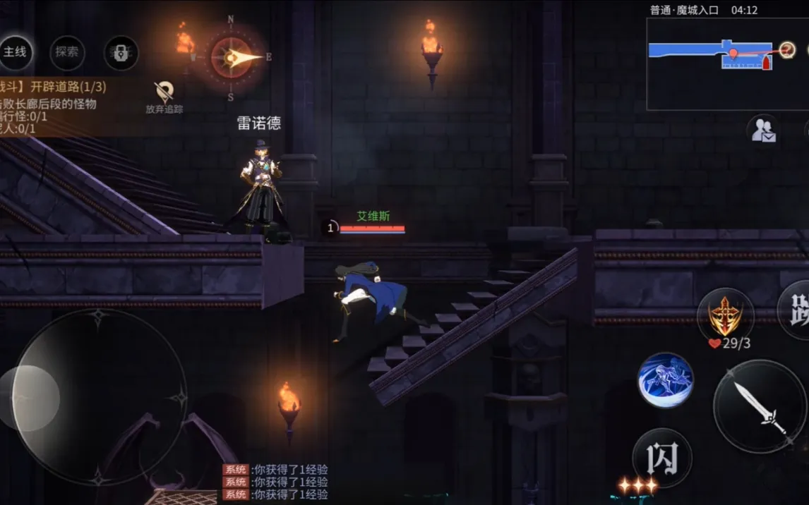 Игра построена на классической двухмерной графике и side-scrolling-геймплее. Управление использует стандартную схему: виртуальный джойстик для перемещения слева и зона действий справа. Особого внимания заслуживает механизм уклонения, активация которого в точный момент атаки противника ненадолго замедляет время, предоставляя тактическое окно для контратаки. Помимо основной сюжетной линии, в замке присутствует нейтральная хаб-зона для управления инвентарём, смены персонажей и взаимодействия с NPC.