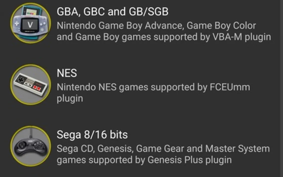 Основой работы ClassicBoy Pro является модульная система ядер. Пользователь самостоятельно загружает необходимые компоненты для интересующих его консолей прямо из интерфейса приложения. Этот процесс происходит через меню Install Cores и не требует поиска файлов в сети. После установки ядер становятся доступны эмуляторы для таких систем, как PSP, PlayStation, Nintendo 64 и DS, Game Boy всех поколений, NES, SNES. Также поддерживаются Sega Megadrive, Saturn и CD, Neo-Geo, Atari 2600-7800, TurboGrafx, 3DO и ColecoVision. Каждая платформа настраивается индивидуально.
