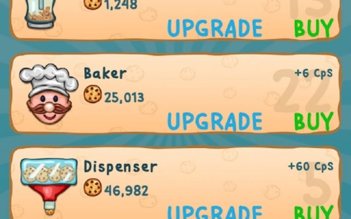 Основной цикл строится на триаде: сбор, улучшение, автоматизация. Сначала вы вручную генерируете печенье тапами. Затем инвестируете первую выручку в помощников — от бабушки с семейным рецептом до высокотехнологичной пекарни. Каждый юнит имеет уникальную кривую доходности и стоимость апгрейда. Далее в дело входят бустеры. Они временно умножают продуктивность всей цепочки. Самый глубокий слой — система престижа и уникальные печенья. Всего доступно более 300 видов, включая экзотические вроде печенья-пиццы или лавового. Каждое дает не только визуальное разнообразие, но и особый модификатор к доходу.