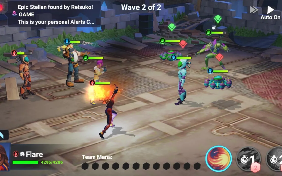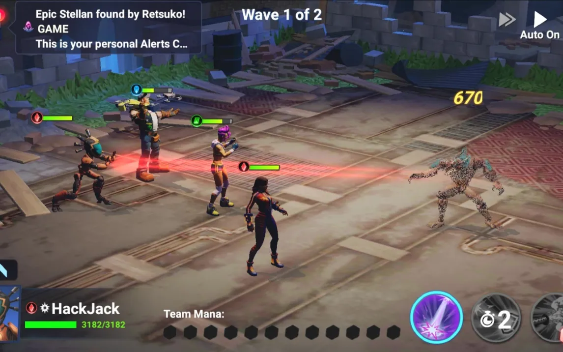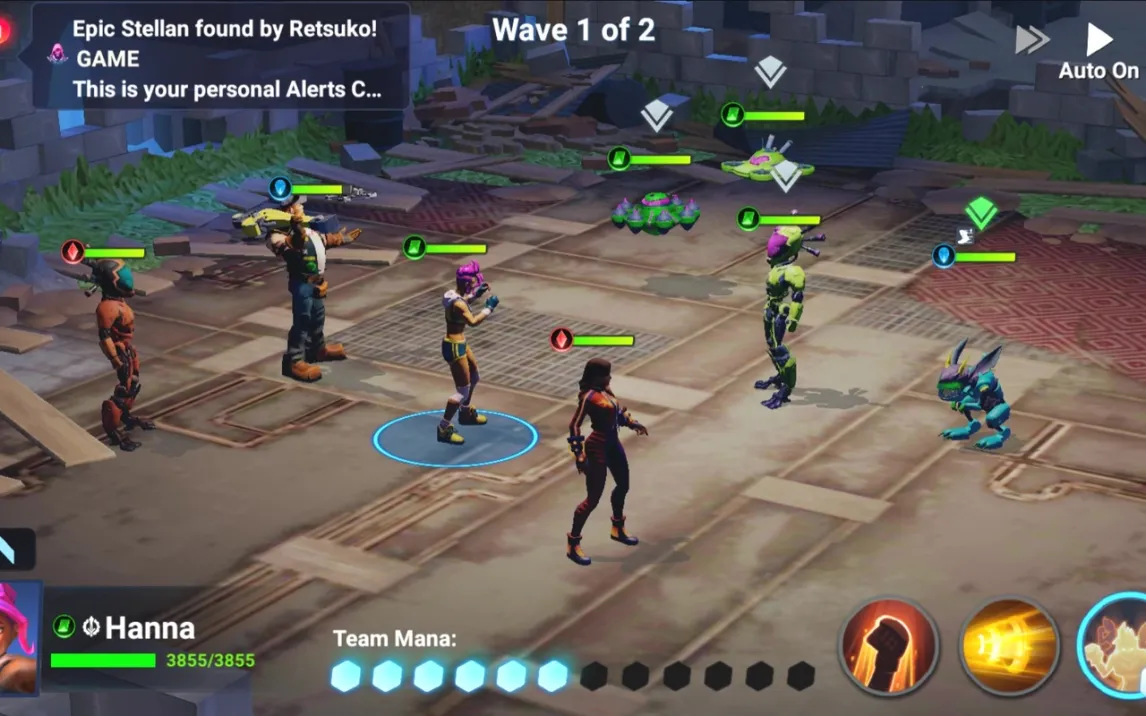 Боевая система реализована через интуитивный интерфейс: в правом нижнем углу экрана расположены панели активации всех типов атак. Для нанесения урона требуется выбрать конкретную атаку и указать цель. После достижения второго уровня игрок получает доступ к автоматическому режиму ведения боя, который позволяет героям действовать независимо без прямого тактического ввода команд. Изначально в распоряжении игрока находятся три персонажа, включая ключевых героев сюжета — Ханну и Флер. Прогресс через уровни и победы в сражениях разблокируют доступ к коллекции, включающей более двадцати уникальных персонажей, каждый из которых обладает индивидуальным набором атак и ультимативных способностей.