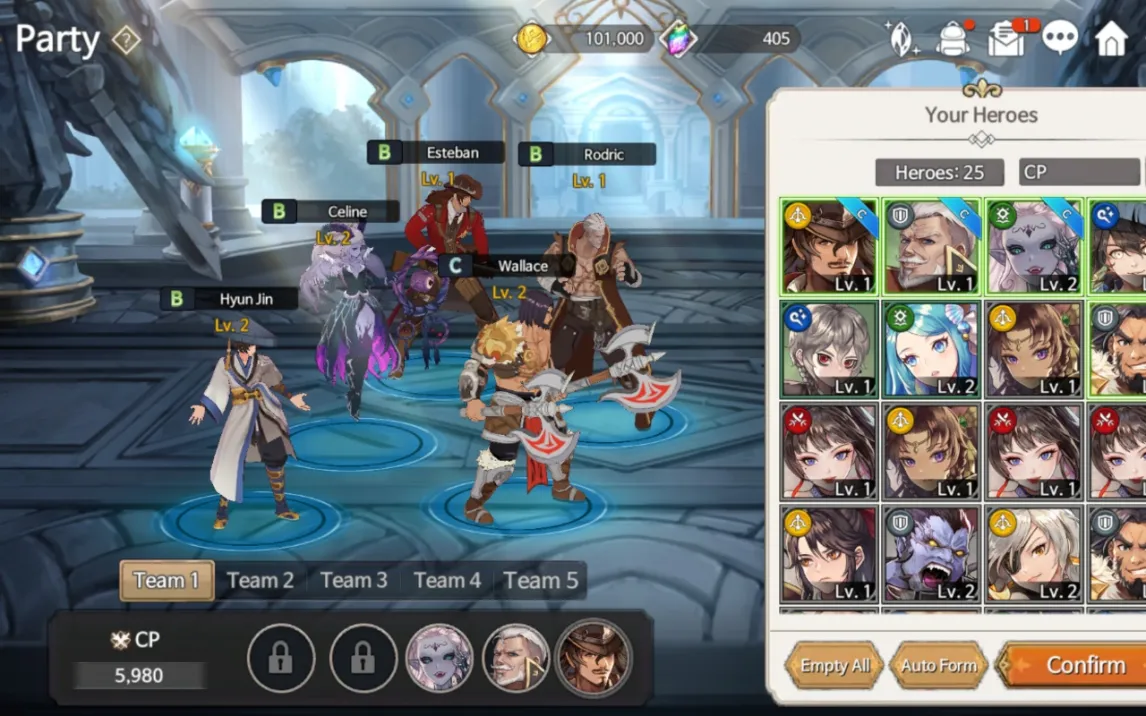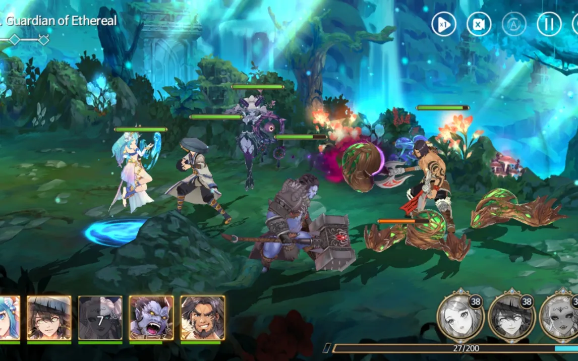 Игра предлагает систему сбора и прокачки более тридцати уникальных персонажей, каждый со своим набором способностей и боевой ролью. Механика позволяет комбинировать навыки героев для создания эффективных тактических команд. Прогресс персонажей напрямую влияет на их статистику и открывает новые умения.