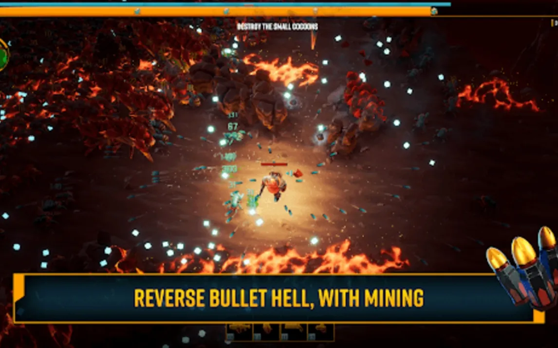 Геймплей построен на принципах жанра bullet-hell survivor, где персонаж автоматически атакует ближайших врагов. Это позволяет игроку полностью сконцентрироваться на позиционировании, планировании маршрута по процедурно-генерируемым пещерам и тактическом использовании окружающей среды. Каждая миссия генерирует уникальную сеть туннелей, содержащих залежи ресурсов, вражеские гнёзда и скрытые опасности. Ключевой стратегический элемент — возможность разрушения terrain, то есть стен пещеры, для создания новых проходов, отсечения вражеских волн или доступа к редкой руде. Прогрессия осуществляется через перманентные улучшения, открываемые между забегами, и временные усиления, находимые непосредственно в ходе миссии.