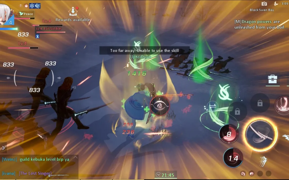 Система боя выделяется на фоне многих конкурентов: управление через виртуальный джойстик и тактильные кнопки навыков позволяет строить сложные комбинации атак, уклонений и прыжков. Это критически важно как в PvE против боссов, так и в соревновательных PvP-режимах. Прогрессия следует классической схеме MMORPG с выполнением сюжетных и побочных заданий, при этом игра предлагает режим автоматического перемещения для удобства.