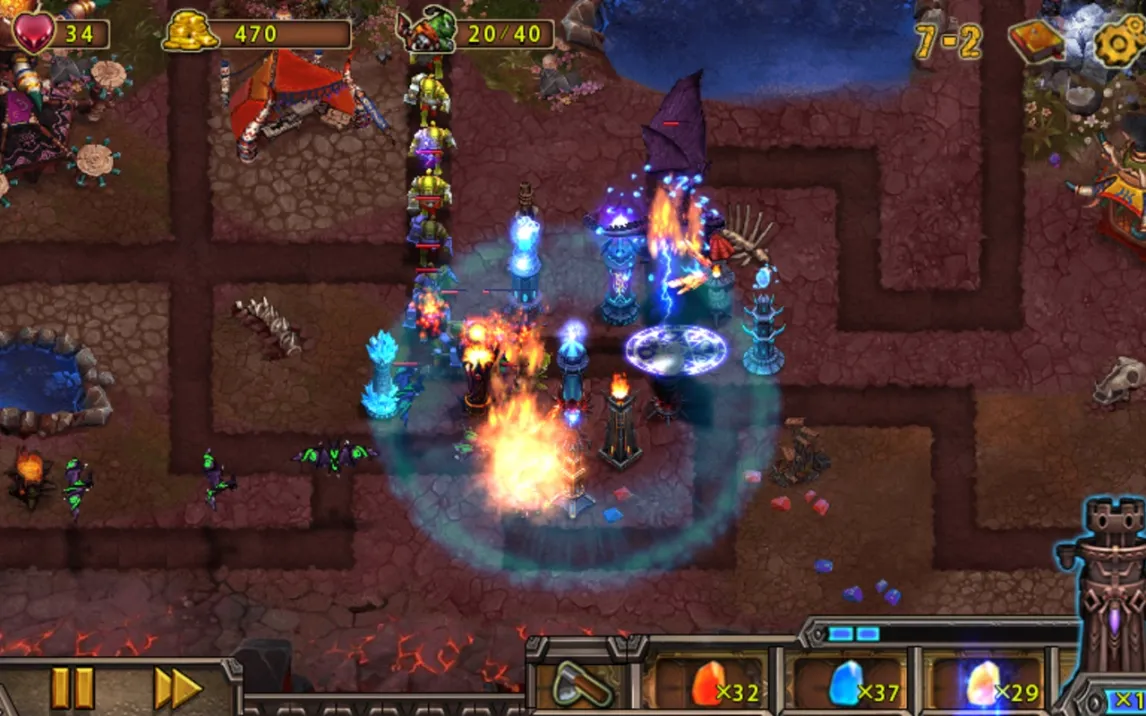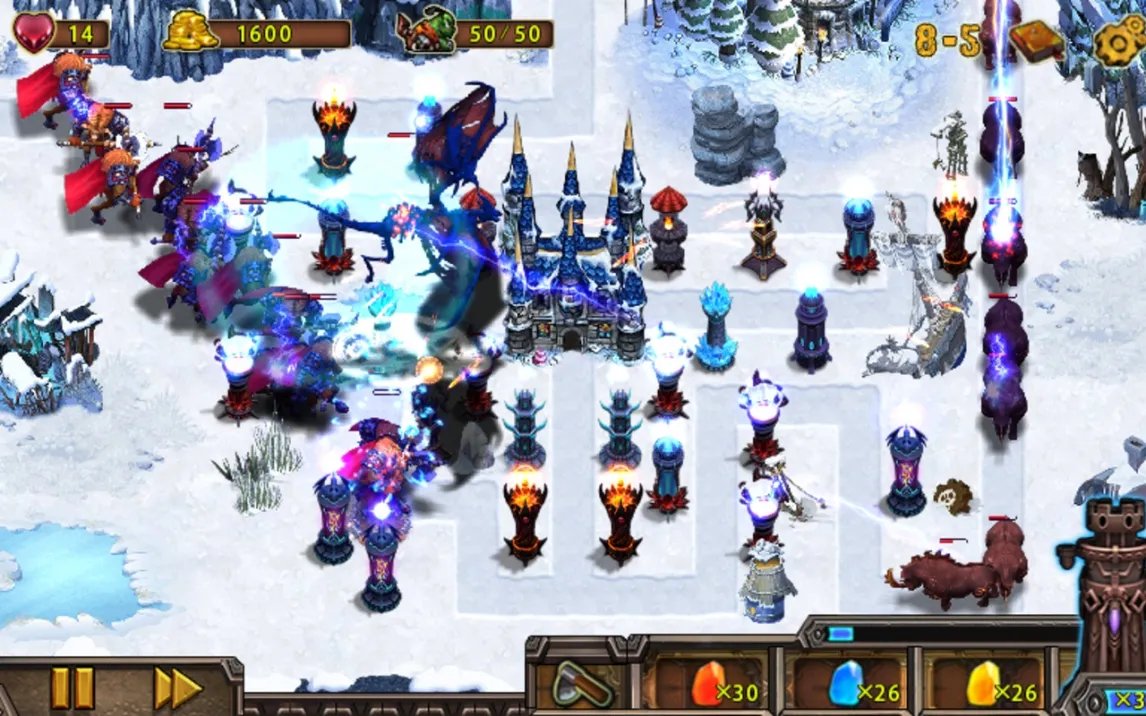 Вас ждёт прокачка в стиле RPG: каждая башня может быть индивидуально улучшена. Вкладывайте ресурсы, чтобы увеличивать урон, радиус действия, длительность эффектов или открывать совершенно новые способности. Это позволяет адаптировать вашу оборону под конкретные угрозы и создавать персонализированные стратегии. Визуальные эффекты заклинаний и атаки башен выполнены на высоком уровне — взрывы пламени, сковывающий лёд и разряды энергии создают по-настоящему зрелищное фэнтези-шоу прямо на поле боя. Интерфейс интуитивно понятен и предоставляет всю необходимую информацию для принятия тактических решений в реальном времени.