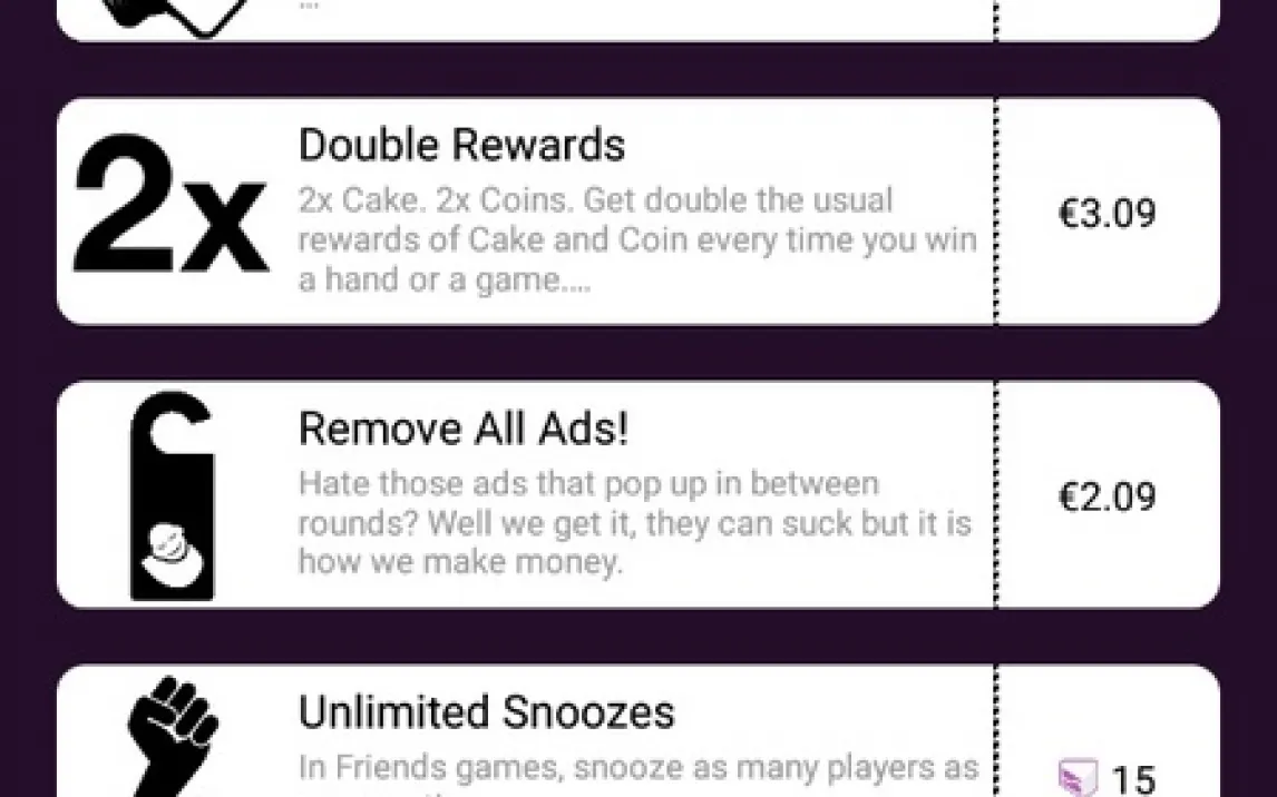 Игра предлагает не просто адаптацию, а целую экосистему для поклонников жанра. Колода постоянно пополняется и уже насчитывает тысячи уникальных карт, что гарантирует уникальный опыт в каждой партии. Вы можете создать приватную комнату для игры с друзьями, используя встроенную систему приглашений, или бросить вызов случайным оппонентам в глобальном матчмейкинге. Особенность Evil Apples — возможность создавать собственные, пользовательские карточки с ответами, добавляя в игру персональный творческий элемент. Для максимального комфорта доступна опция Turbo, которая убирает всю рекламу и открывает дополнительные возможности кастомизации.