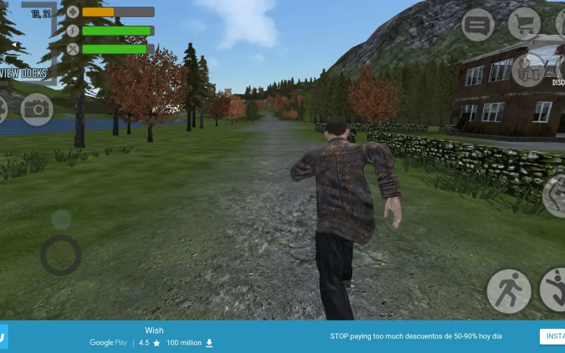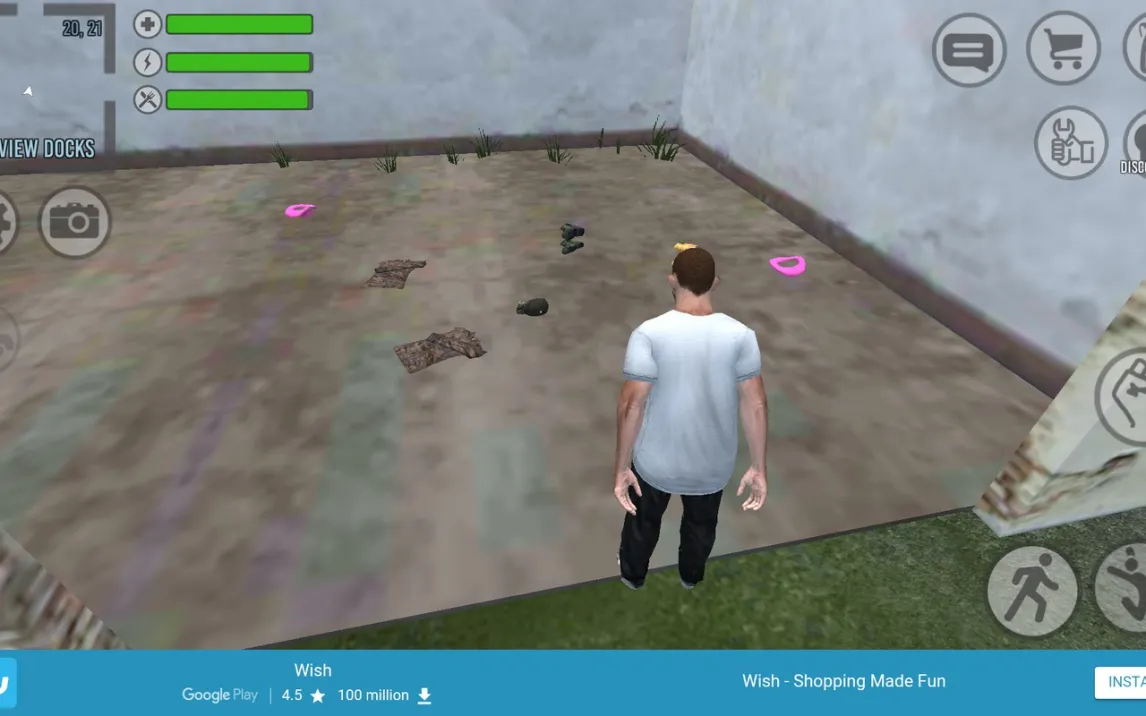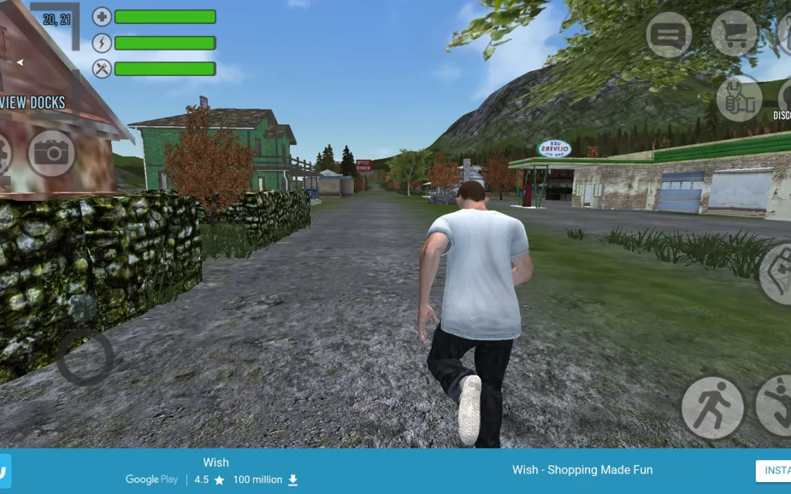 Игровой процесс построен на глубокой системе исследования и крафта. Вы начинаете с пустым инвентарём на обширной локации, наполненной опасностями и ресурсами. Вам предстоит скрупулёзно обыскивать здания и территорию, находя оружие различного класса (от холодного до огнестрельного), элементы брони, медикаменты и провизию. Для быстрого перемещения по карте доступны несколько моделей транспортных средств, которые можно отыскать и использовать. Управление оптимизировано для мобильных устройств: виртуальный джойстик обеспечивает точное перемещение, а продуманная панель действий справа даёт мгновенный доступ к атаке, прыжку, инвентарю, голосовому чату и другим ключевым функциям.