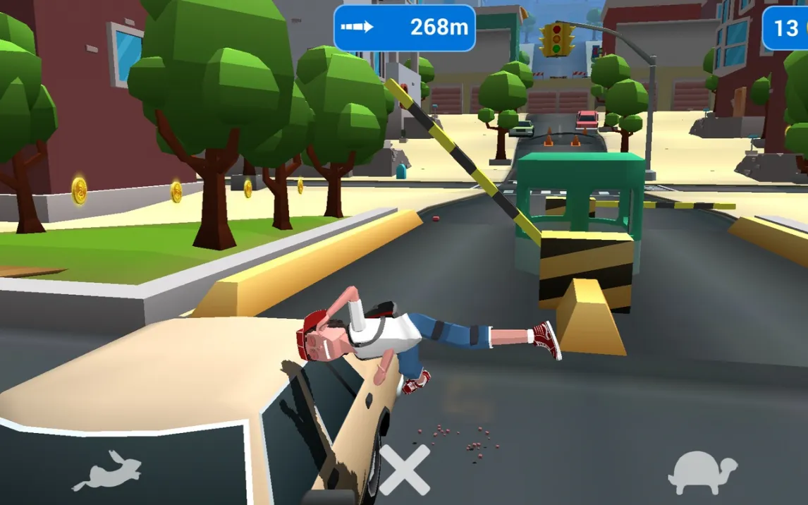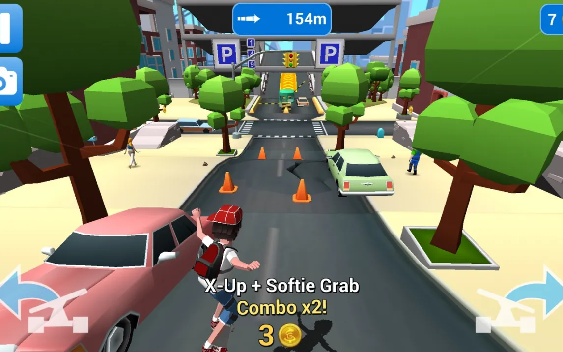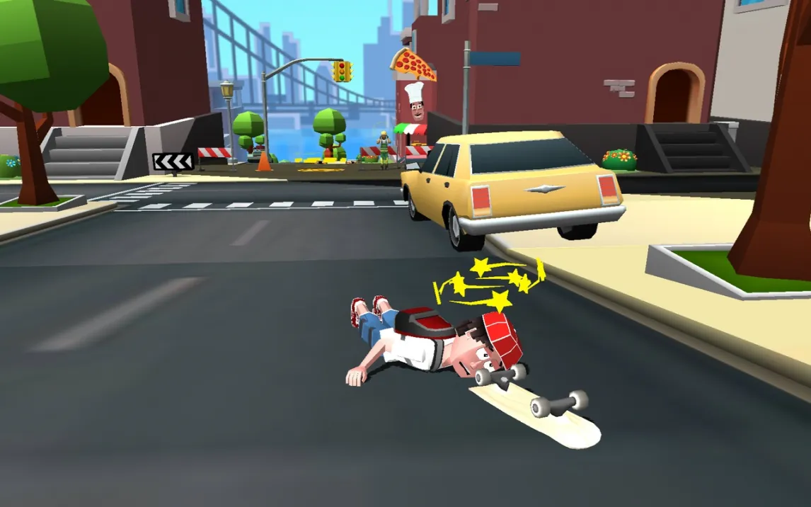 В центре игрового процесса Faily Skater лежит концепция постоянного, неостанавливаемого движения. Пользователь управляет скейтбордистом, который мчится по улицам стилизованного города Сан-Франфайли. Ключевая механическая особенность — полное отсутствие функции торможения, что создает постоянное напряжение и требует заблаговременного планирования траектории. Управление сводится к базовым жестам: тапы по левой и правой части экрана для поворотов и одновременное нажатие для выполнения прыжка. В воздухе доступно вращение доски, необходимое для преодоления части препятствий. Столкновение с любым объектом приводит к детализированной и преувеличенной анимации падения, после чего движение немедленно возобновляется с последней контрольной точки.