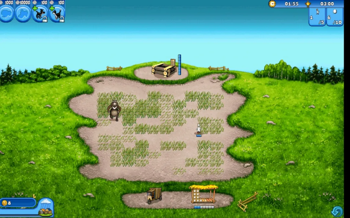Ваша ферма — это живой организм, требующий постоянного внимания. От уровня к уровню задачи усложняются, требуя не только скорости, но и продуманной тактики. Нужно не просто собирать урожай, а выстраивать цепочки производства: от выращивания корма для животных до переработки сырья в ценные товары на фабрике. Вам предстоит контролировать каждый процесс, ведь если забыть полить поля, остановится производство корма, а животные начнут гибнуть. Одновременно с этим нужно следить за безопасностью — голодные медведи так и норовят пробраться на территорию и разорить ваши владения.
